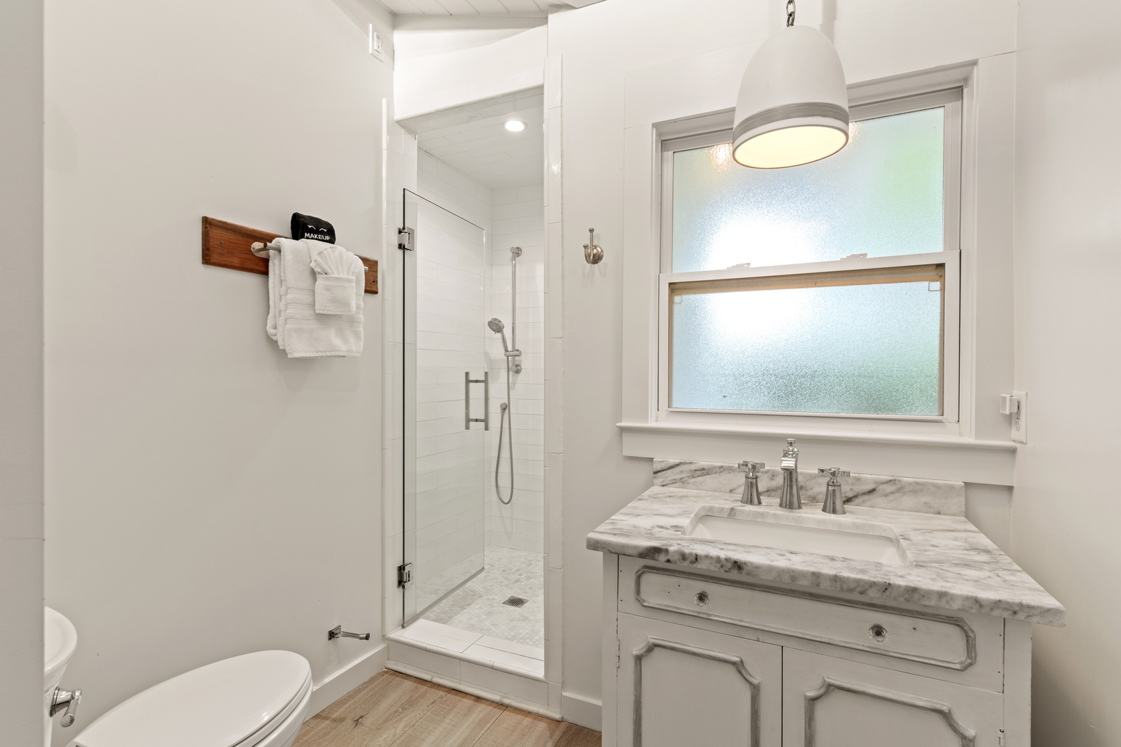 The primary bedroom has a (brand new) queen bed.