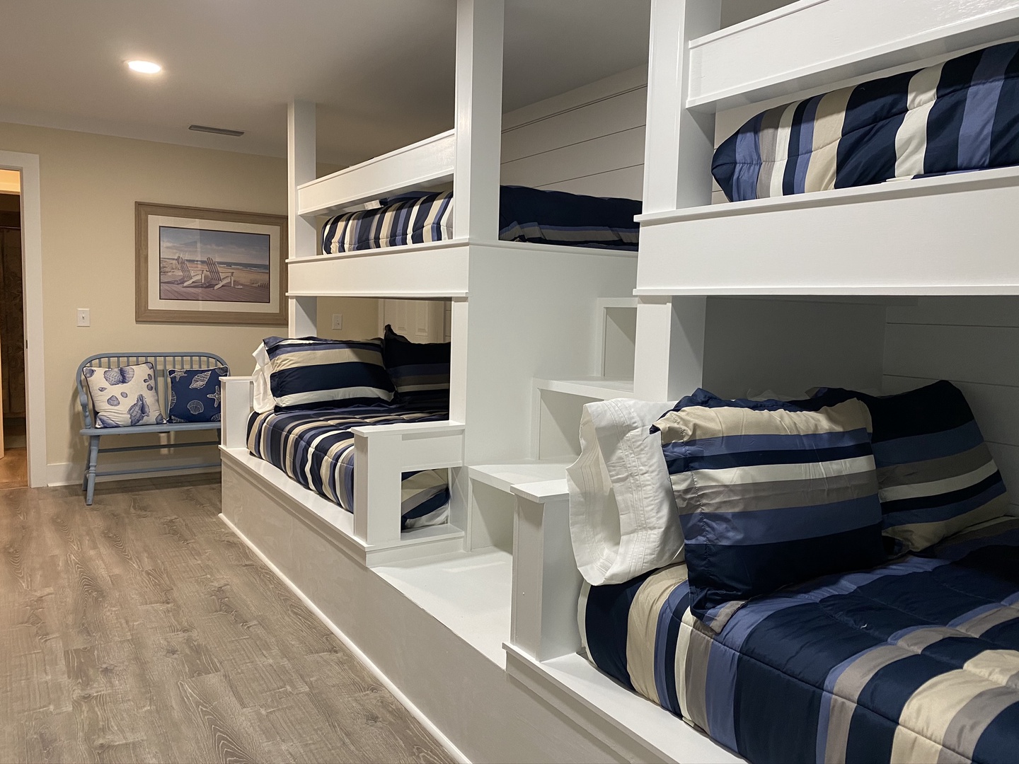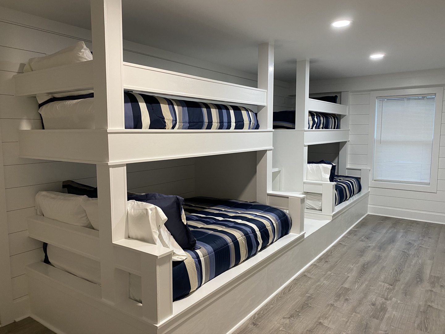 * Guest Room 3 is a large bunk room with 2 full beds (sleeps 4) on the bottom and 2 twins (sleeps 2) on the top.