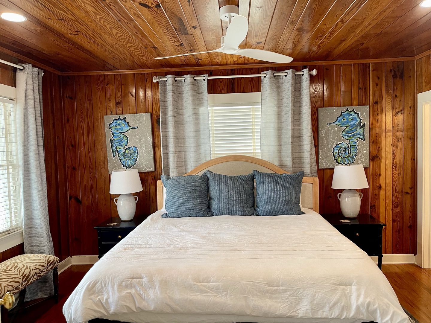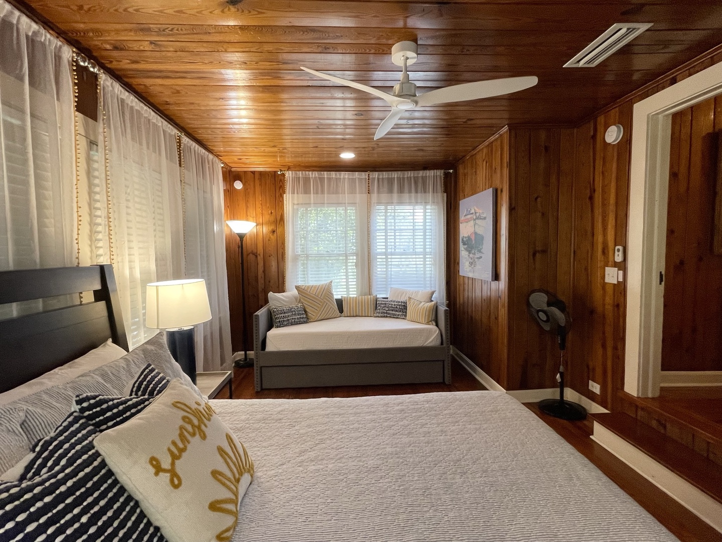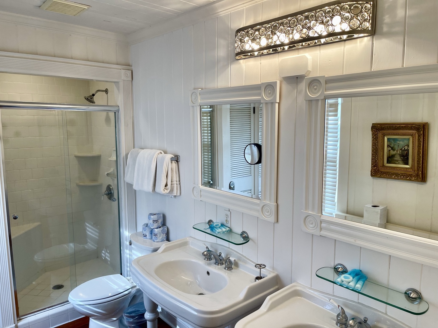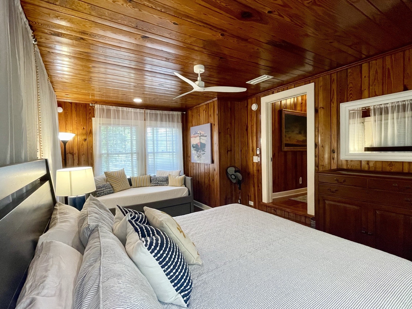 Just down the hall is renovated full bathroom with a shower for guest bedrooms. Bedroom sleeping arrangements include a bedroom with a queen bed, a bedroom with two twin size beds and another bedroom with a King size bed and twin with twin trundle.