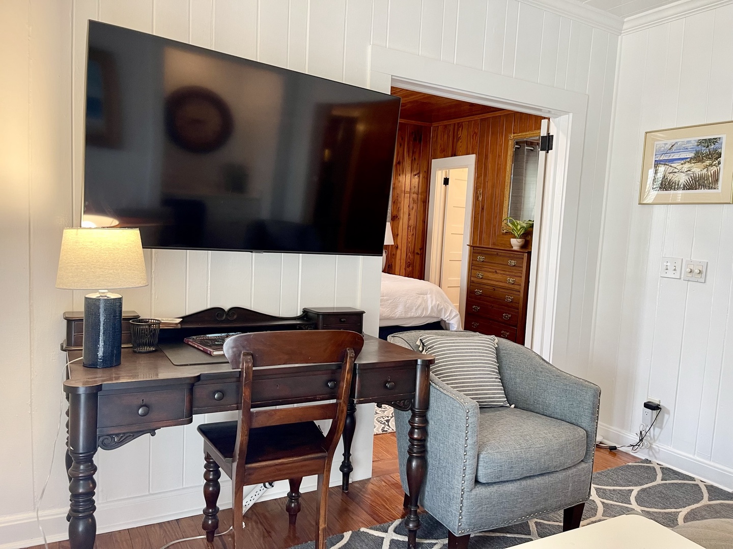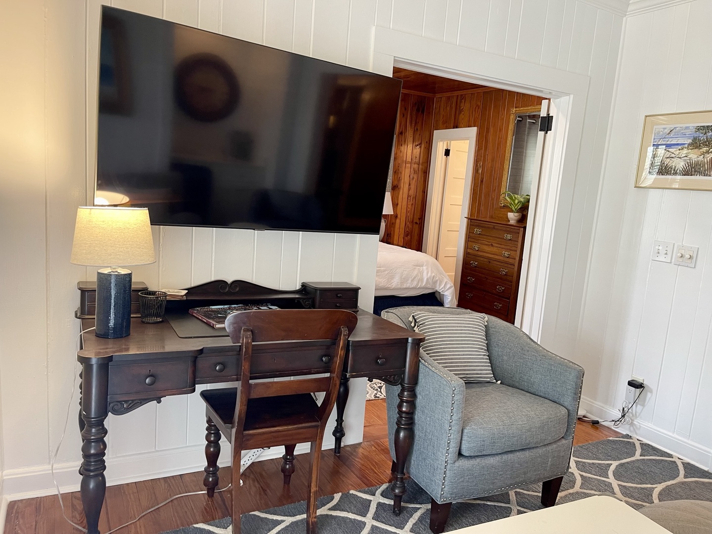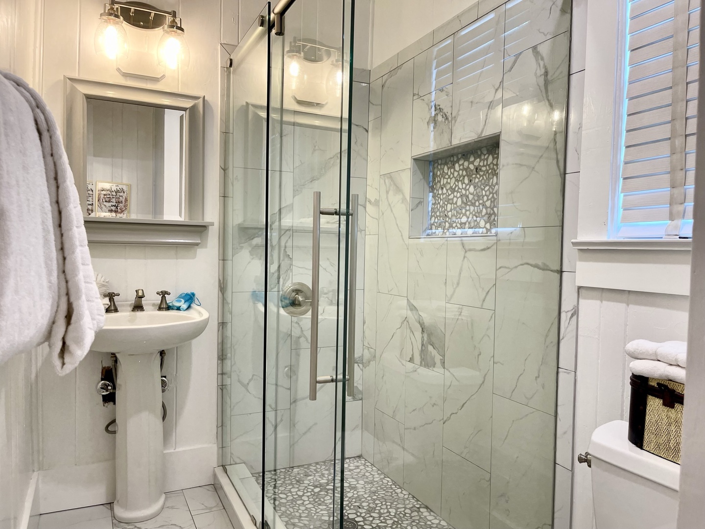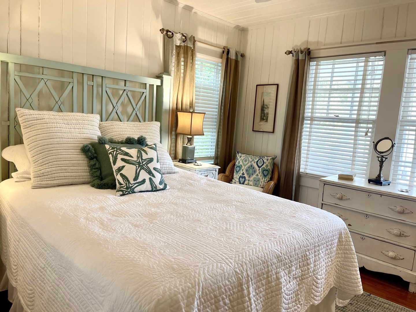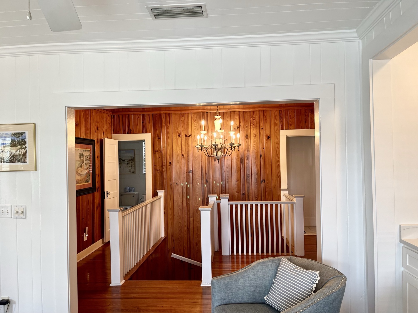 Just down the hall is renovated full bathroom with a shower for guest bedrooms. Bedroom sleeping arrangements include a bedroom with a queen bed, a bedroom with two twin size beds and another bedroom with a King size bed and twin with twin trundle.