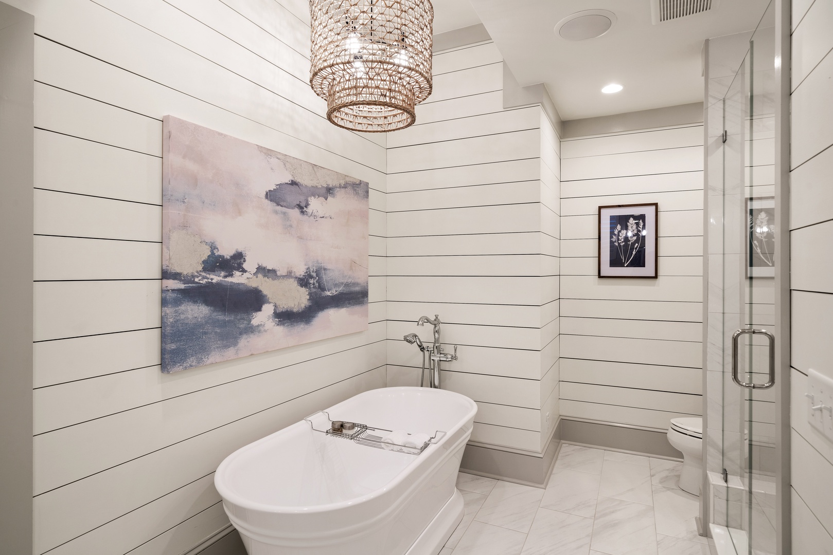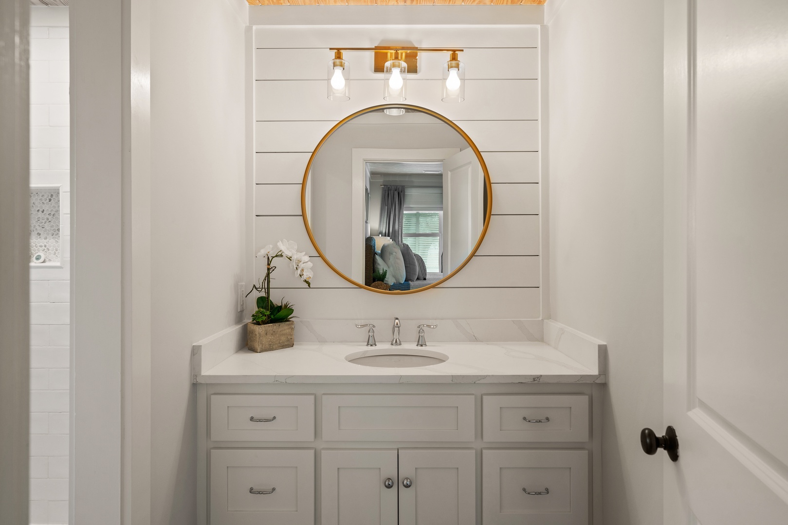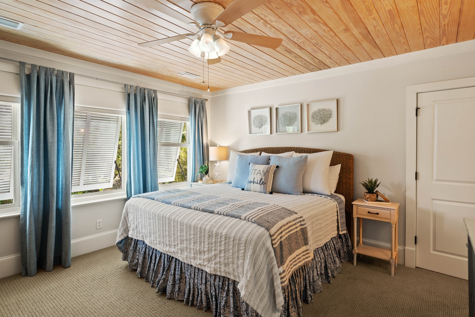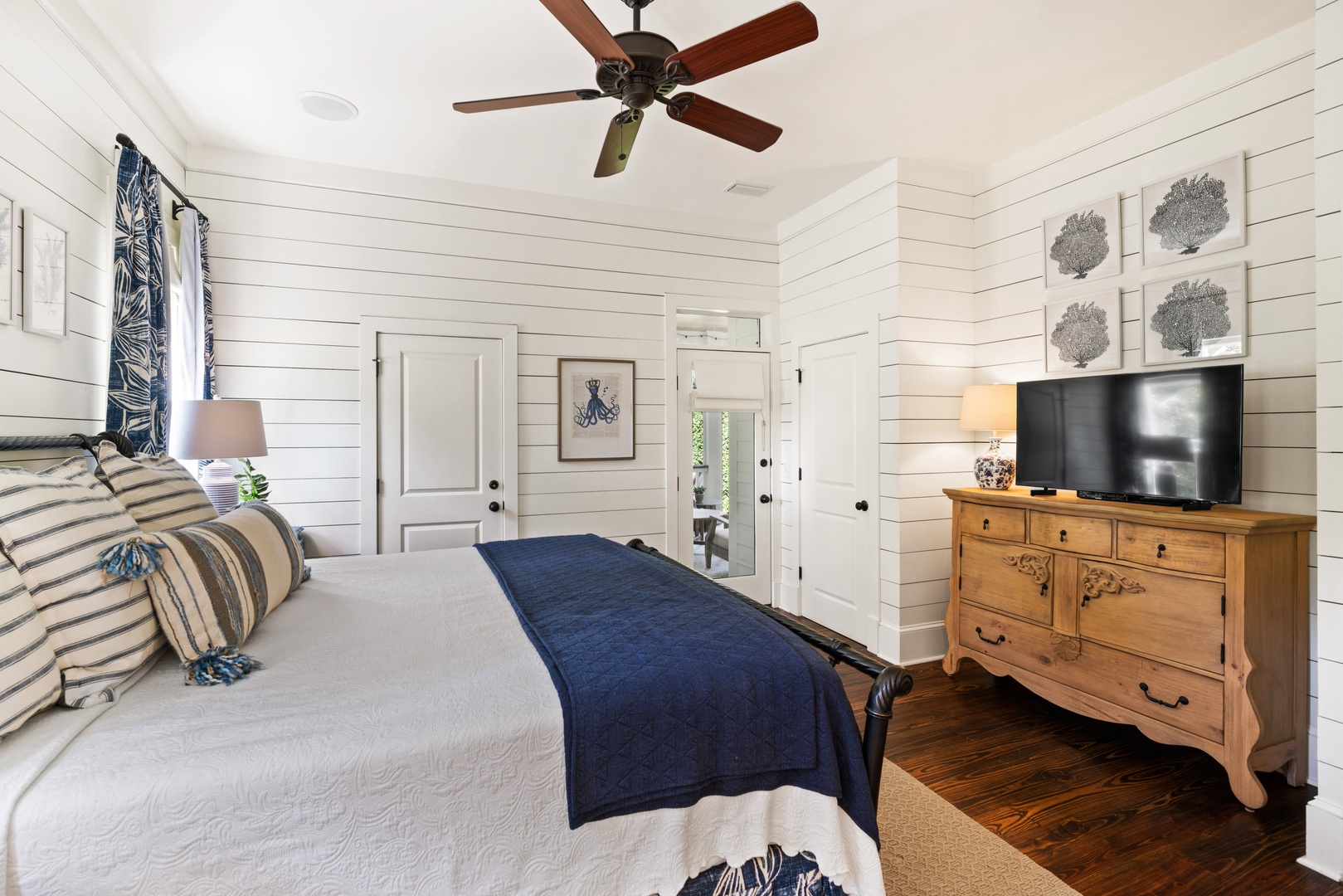 Also located on the first floor is the master suite that has a king size bed, T.V. and a large well appointed master bathroom. This spacious bathroom features a double vanity, a large separate shower and a oversized free standing tub to relax after a long day of exploring St. Simons Island.