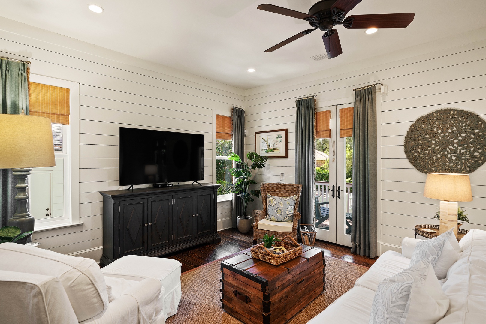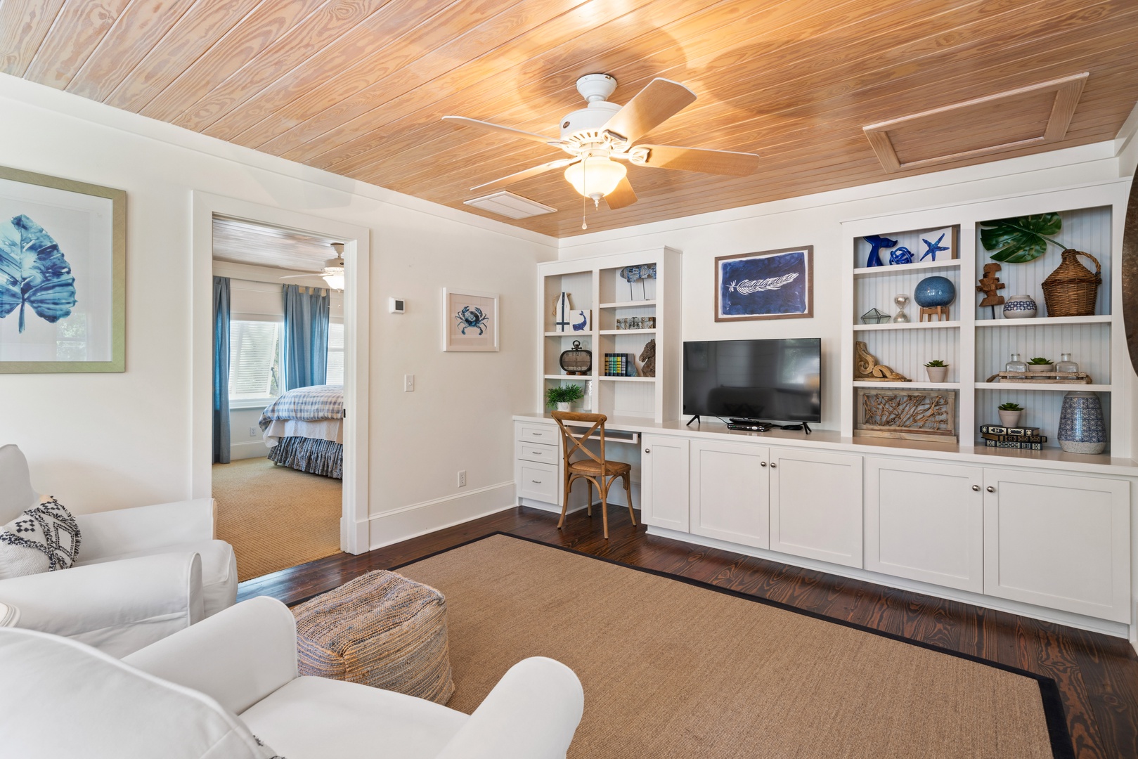 Walk through the French style front doors of this adorable home and you will feel as though you are immediately on Island Time. The large living room with 10’ ceilings is the perfect location in this home for guest to relax and watch the game on the 65” flat screen Smart T.V. Adjacent to the living room is a wonderful flex room which features a full guest bath and closet. It is the perfect space for sitting back and relaxing with a book or playing games.