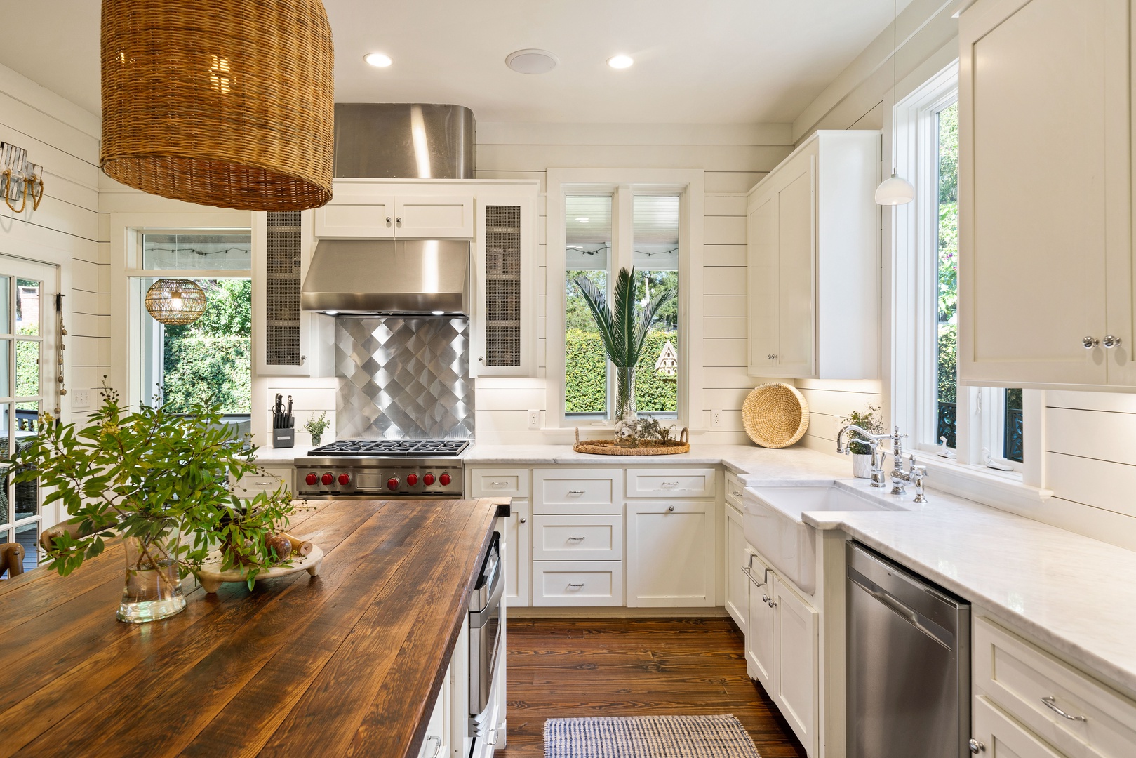 The living room also leads to the comfortable dining room which features a dining table with seating for six and a wet bar with a wine cooler. Walk through the dining room and you will find yourself ready to cook up something savory in this gourmet kitchen. This Chefs kitchen has a 6-burner Wolf range, a sub-zero refrigerator and two additional drink coolers in the Island that seats 3 guest.