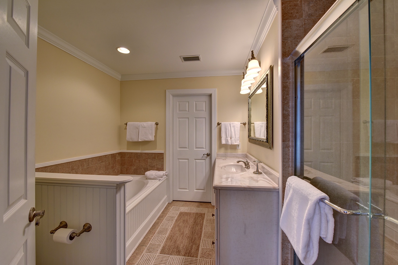 - Third Floor Bedroom 3-Primary Bedroom with King Size Bed and additional Single Bed. En Suite Bathroom, walk in shower, whirlpool tub and single vanity sink.