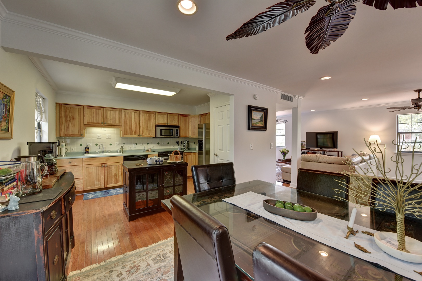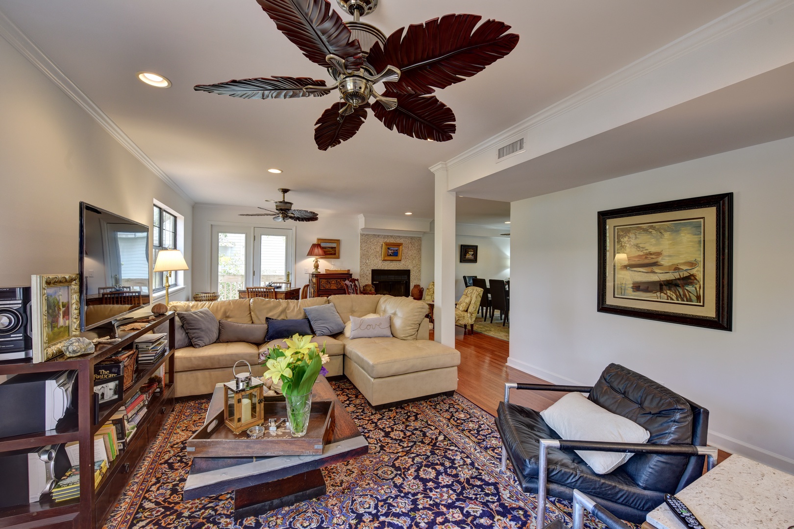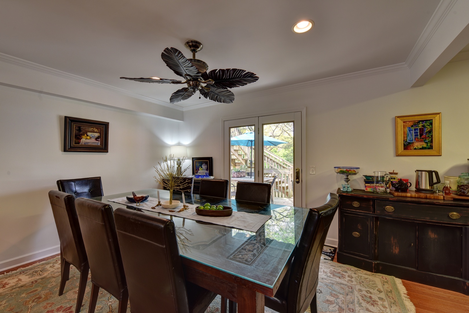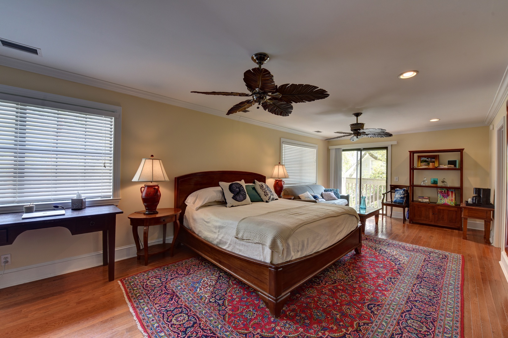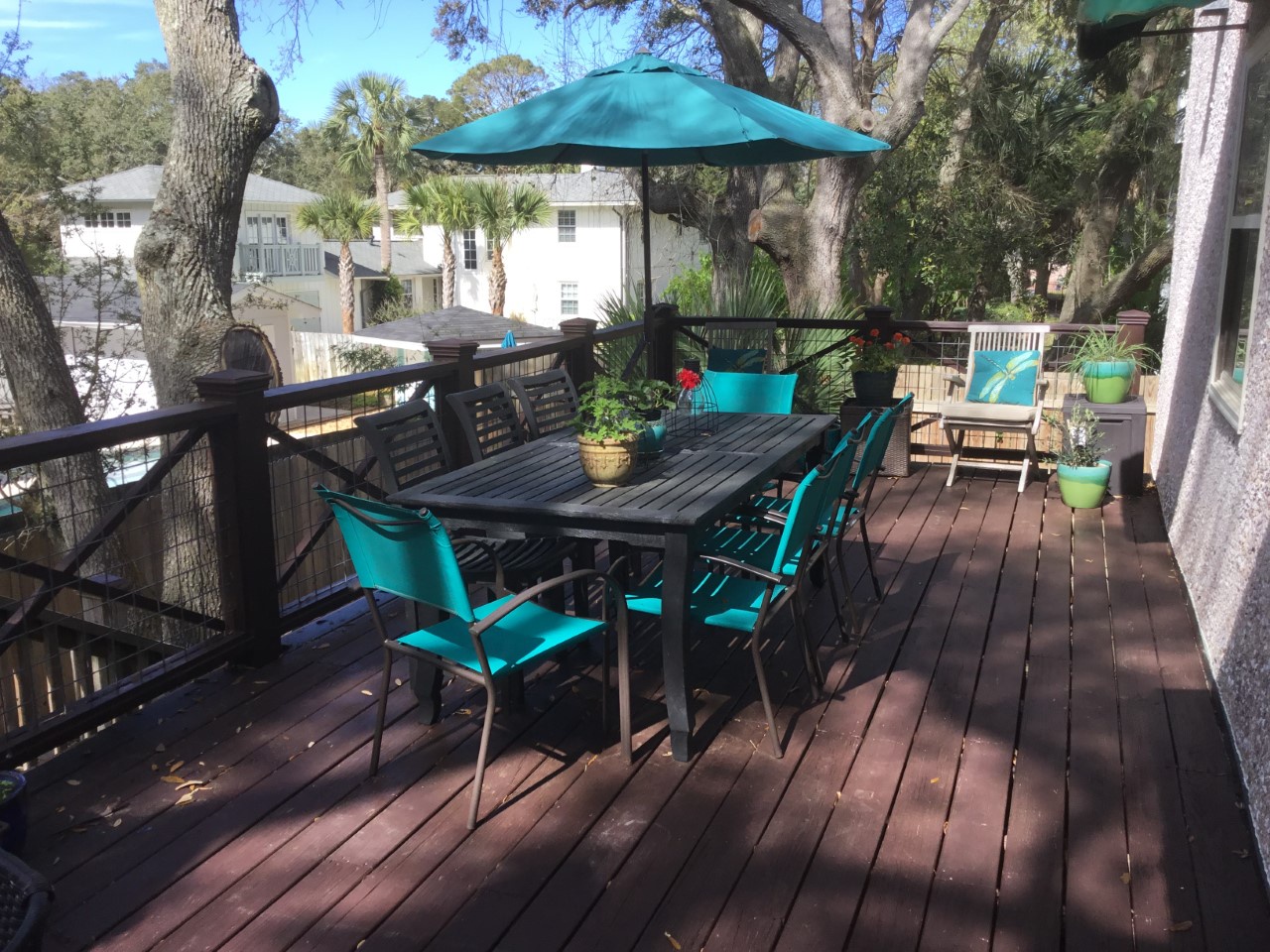 There are three spacious outside areas for lounging and enjoying family and friends. The salt water pool is hard to beat, surrounded by teak chairs and tables and umbrellas. It is sunny all day. The second level deck faces west and is shaded by a canopy of live oak trees, a great place for lunch just off the kitchen with its indoor dining room for eight.There is little traffic here, tucked away on the extreme east end of 10th street at the fourth house from the dunes.