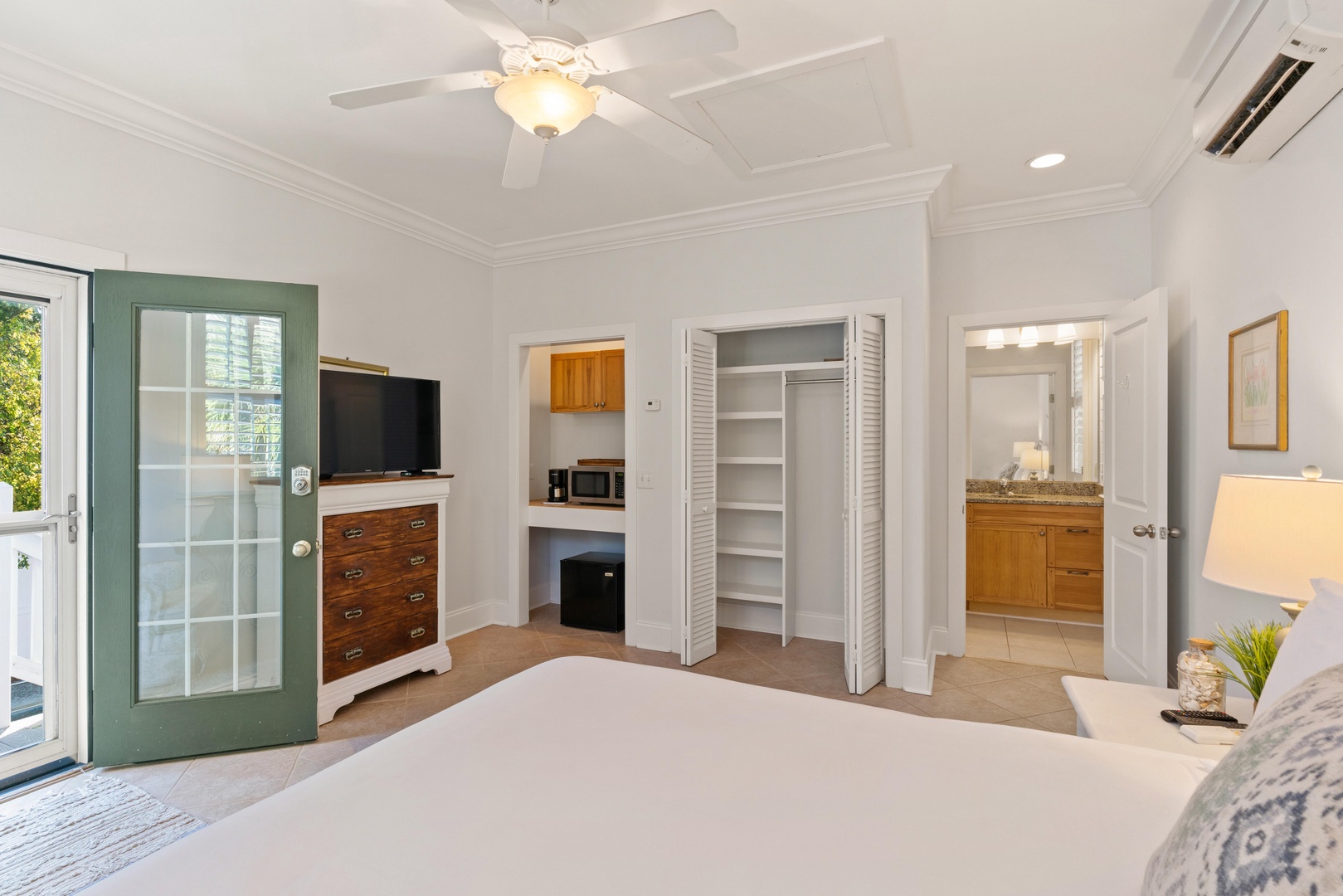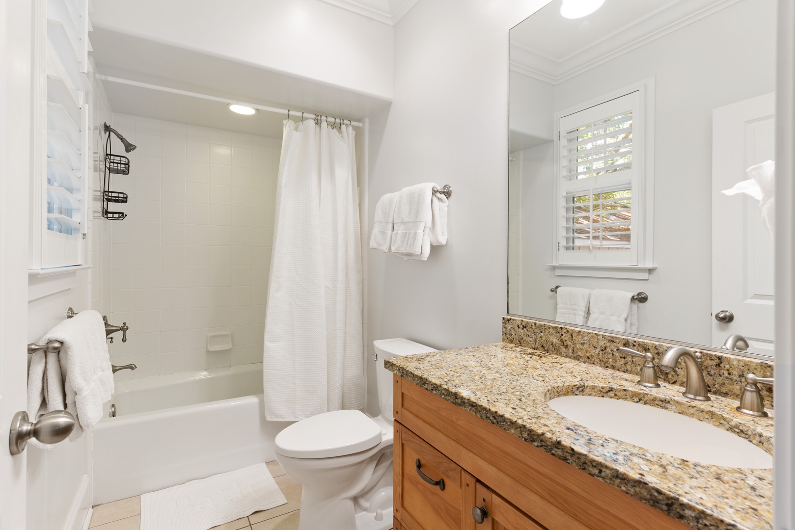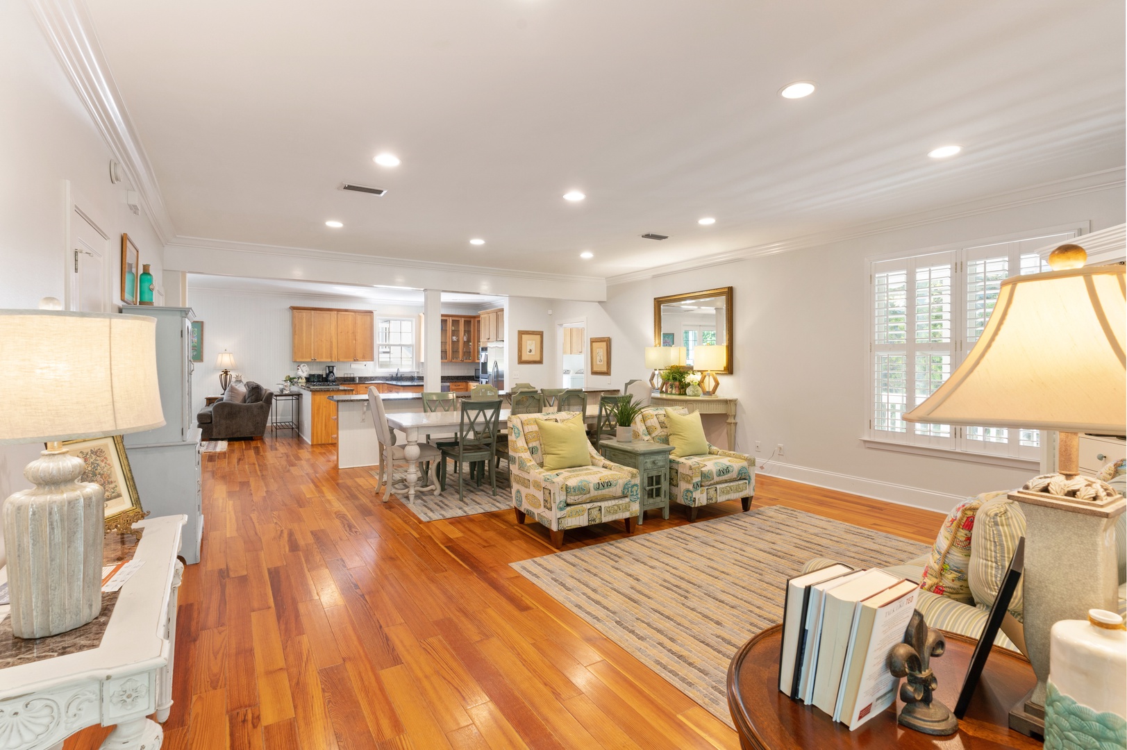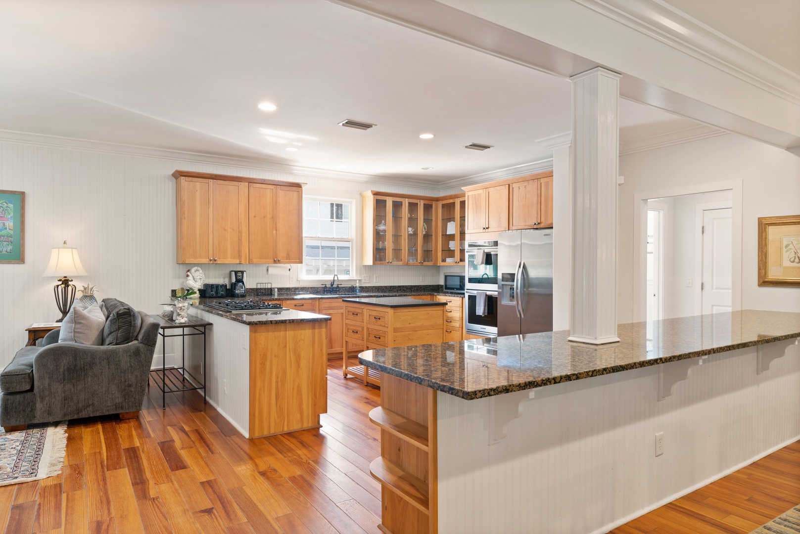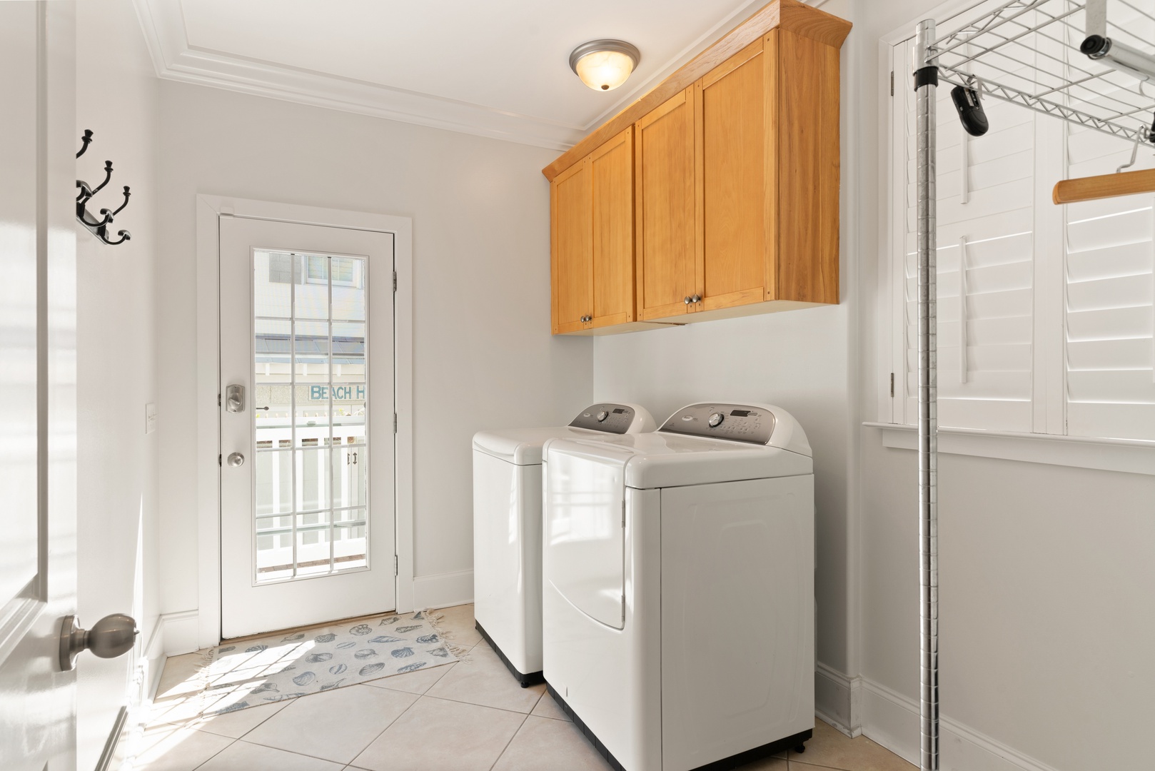 Outside, you can relax on the rocking chair front surrounded by the beauty of live oaks. If you prefer, you can chill out on the screened-in back porch overlooking the pool, or simply soak up the sun poolside. The beach entrances are within walking distance, or just a short drive to the Coast Guard Station beach entrance.