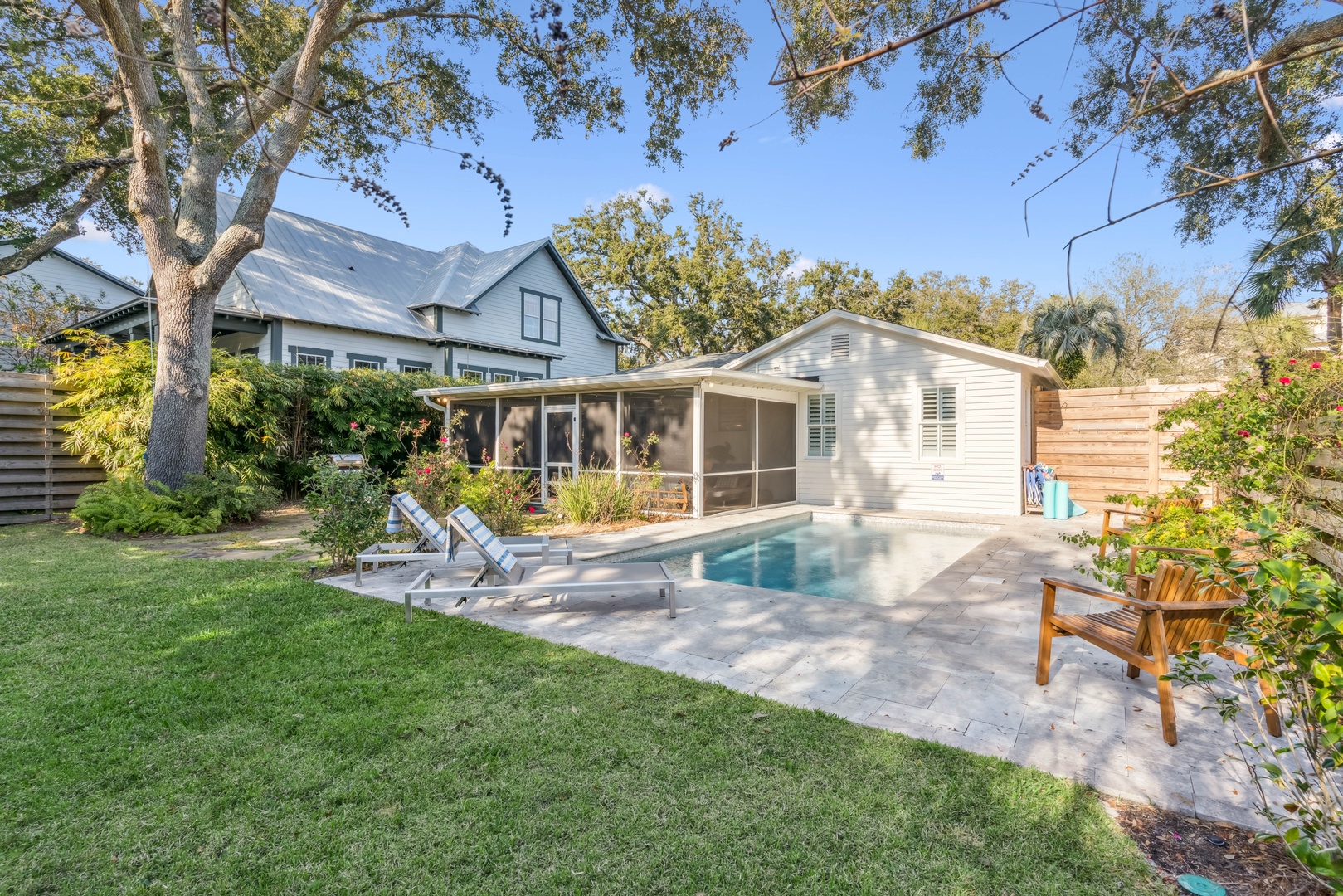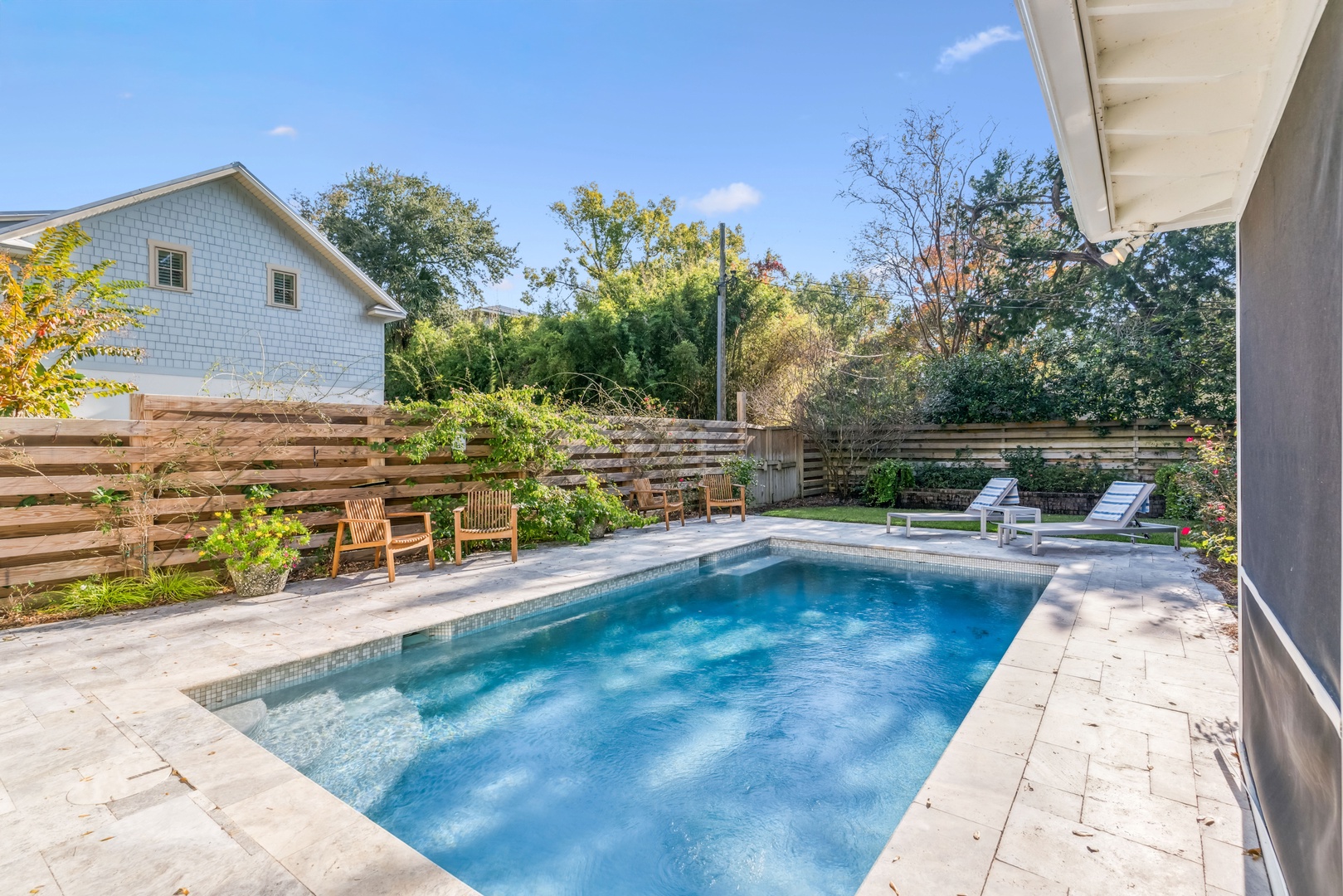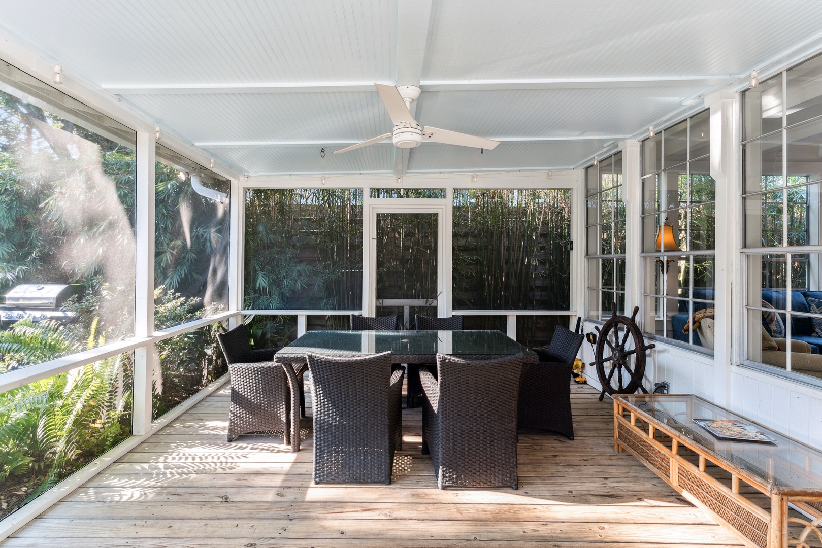 - Big screen porch with al fresco dining and views of the pool and large private backyard.