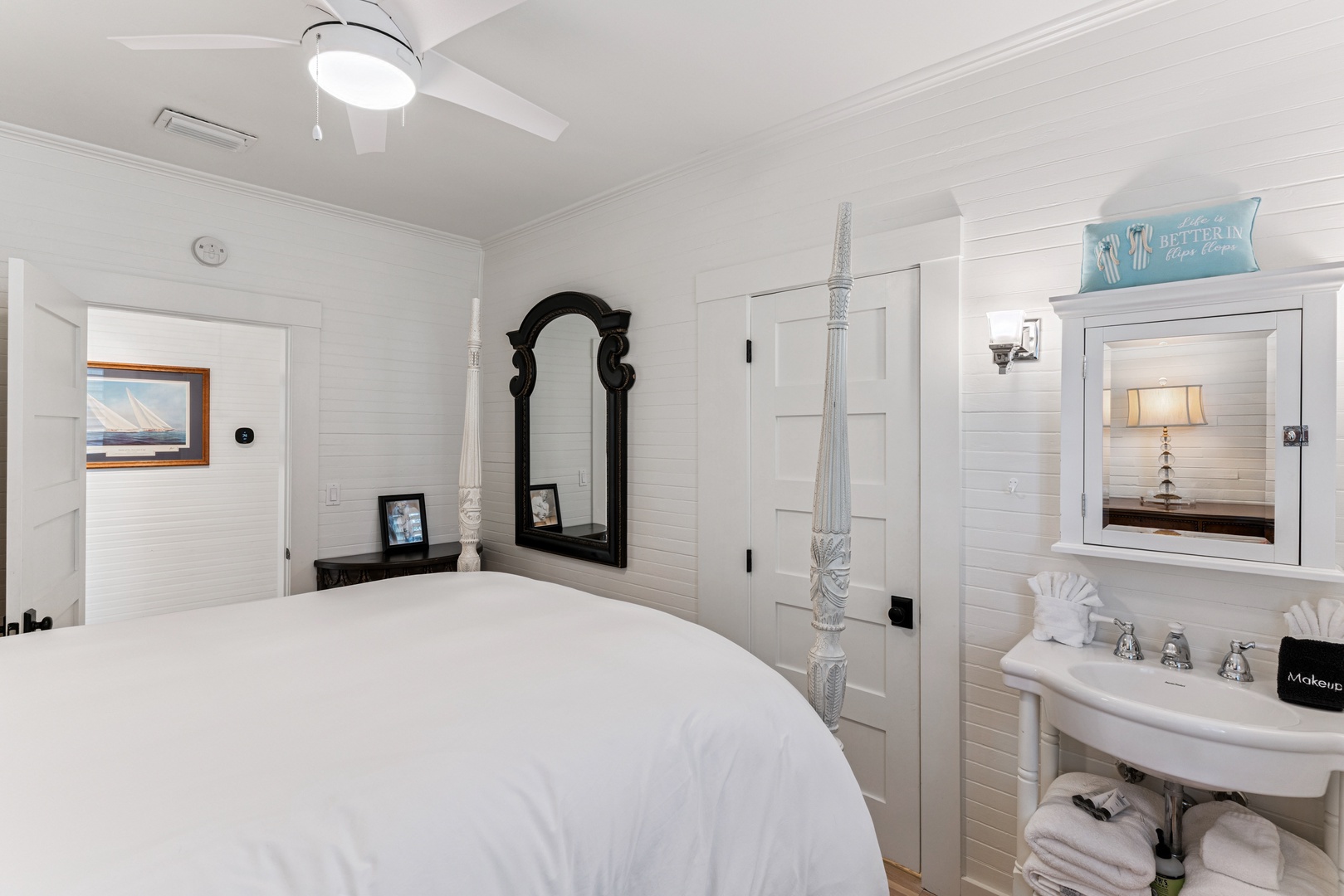 - Queen Bedroom: Comfortable bedding, in room sink area separate from the bathroom.