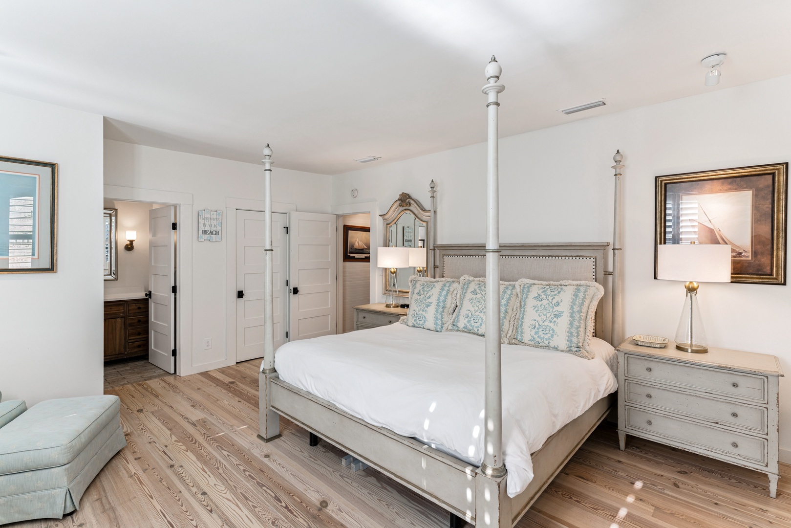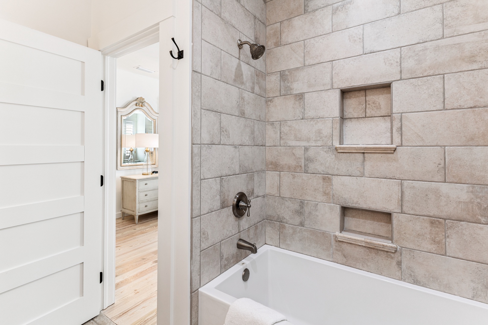 - Primary Bedroom: King size bed, adjoining bathroom with combo tub/shower