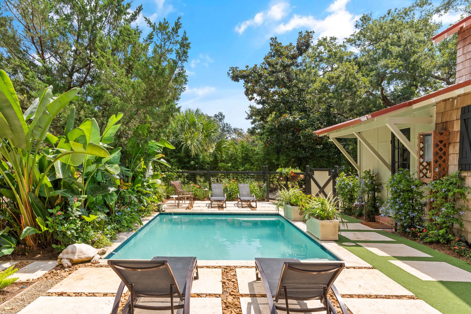 This convenient cottage is close to everything near the beach and pier/village where you will enjoy local shops and restaurants which feature some of the finest Georgia seafood! Note the guest cottage does not have access to the pool, its for your private use, unless the guest cottage is rented with the main house.