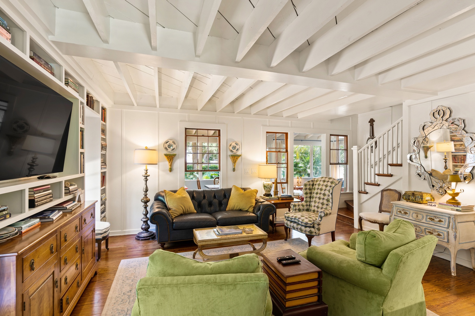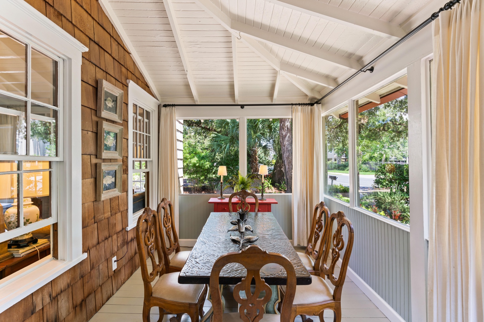 Prepare your meals in the fully equipped chef's kitchen with all the necessary pots, pans, bake ware and utensils essential for any meal. Clean up is made easy with the full sized dishwasher. Enjoy your meals in the sunroom overlooking the front garden while enjoying the day-to-day happenings on St. Simons Island. A stroll down the beach completes the perfect day.