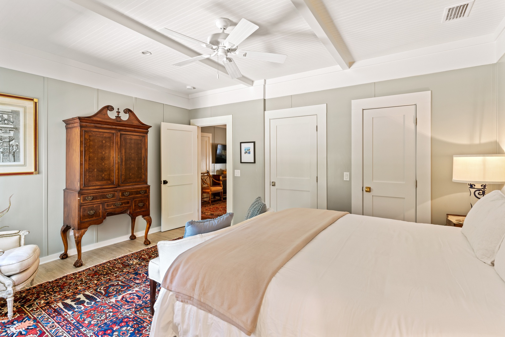 BR1 King, en suite with a beautifully tiled large walk-in shower stall, main floor. This room also has a large sitting room with a sofa. This room is part of the 2022 addition.