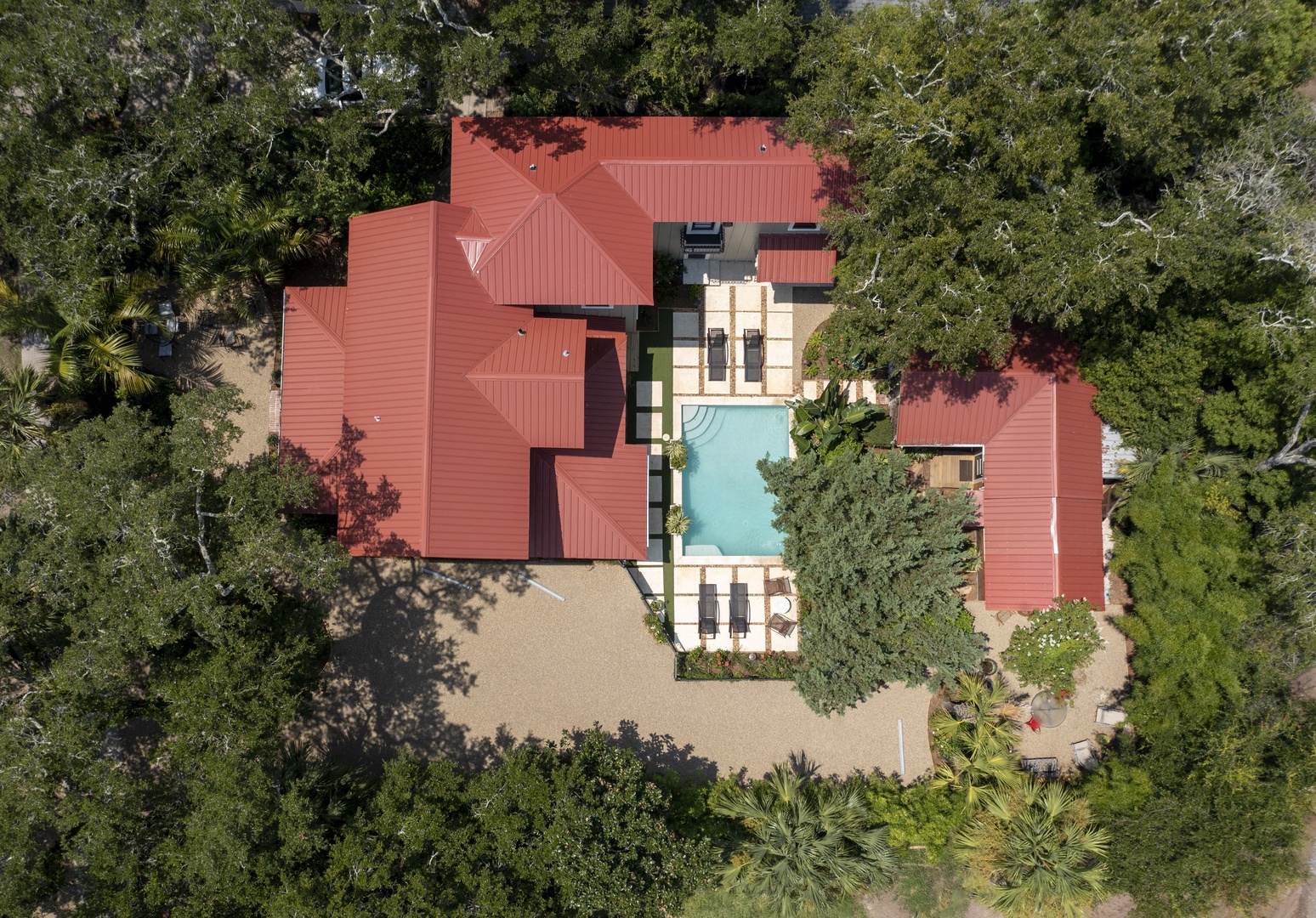 There is a one bedroom guest cottage that may be rented with the property. Otherwise, it is rented separately by other guest. Use of the pool is not shared with the guest cottage.