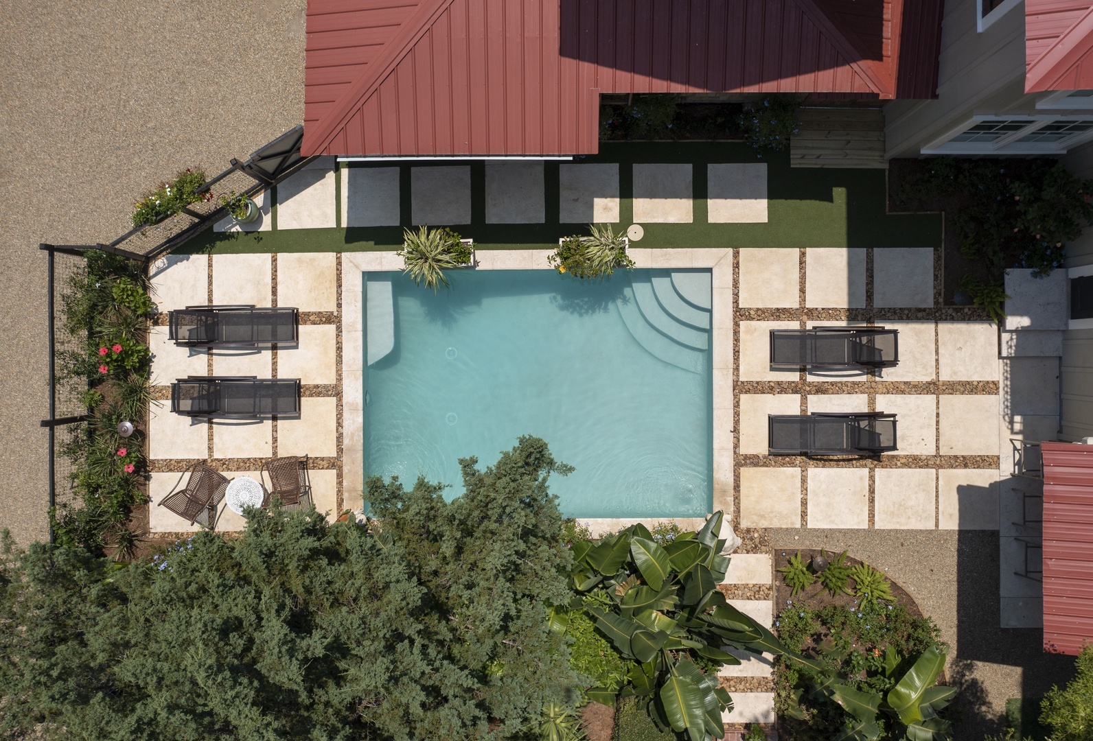 The pool is also new and in a garden oasis - 12 x 18, 5 1/2 FT deep end 3 1/2 FT shallow end. You can optionally have the pool heated with a daily fee, useful for early spring or late fall. The pool is for your private use.