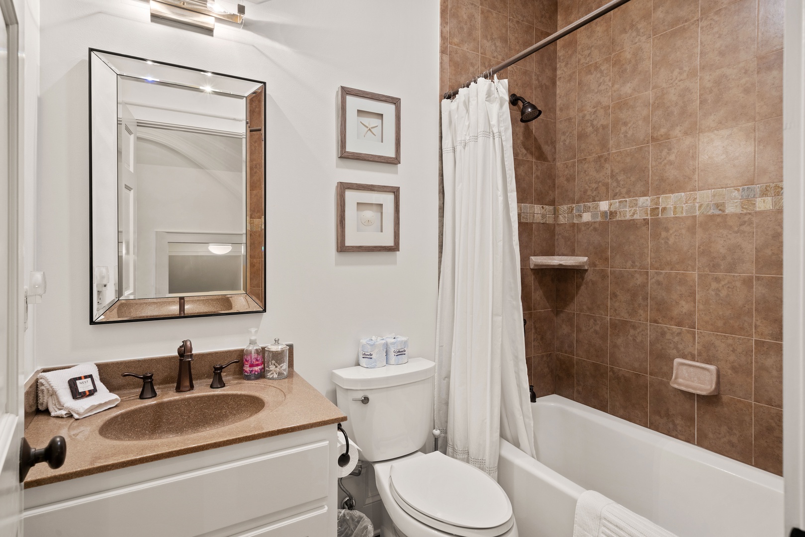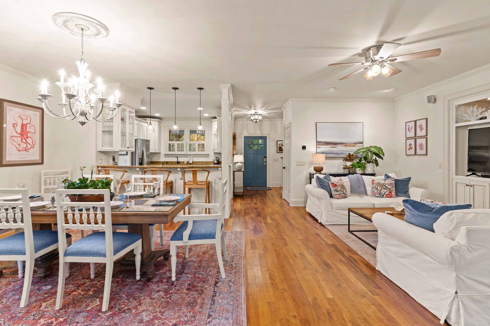 - You'll love the open living room with 64" smart TV, comfortable couches, and plenty of seating for everyone.