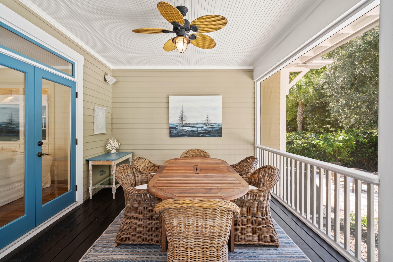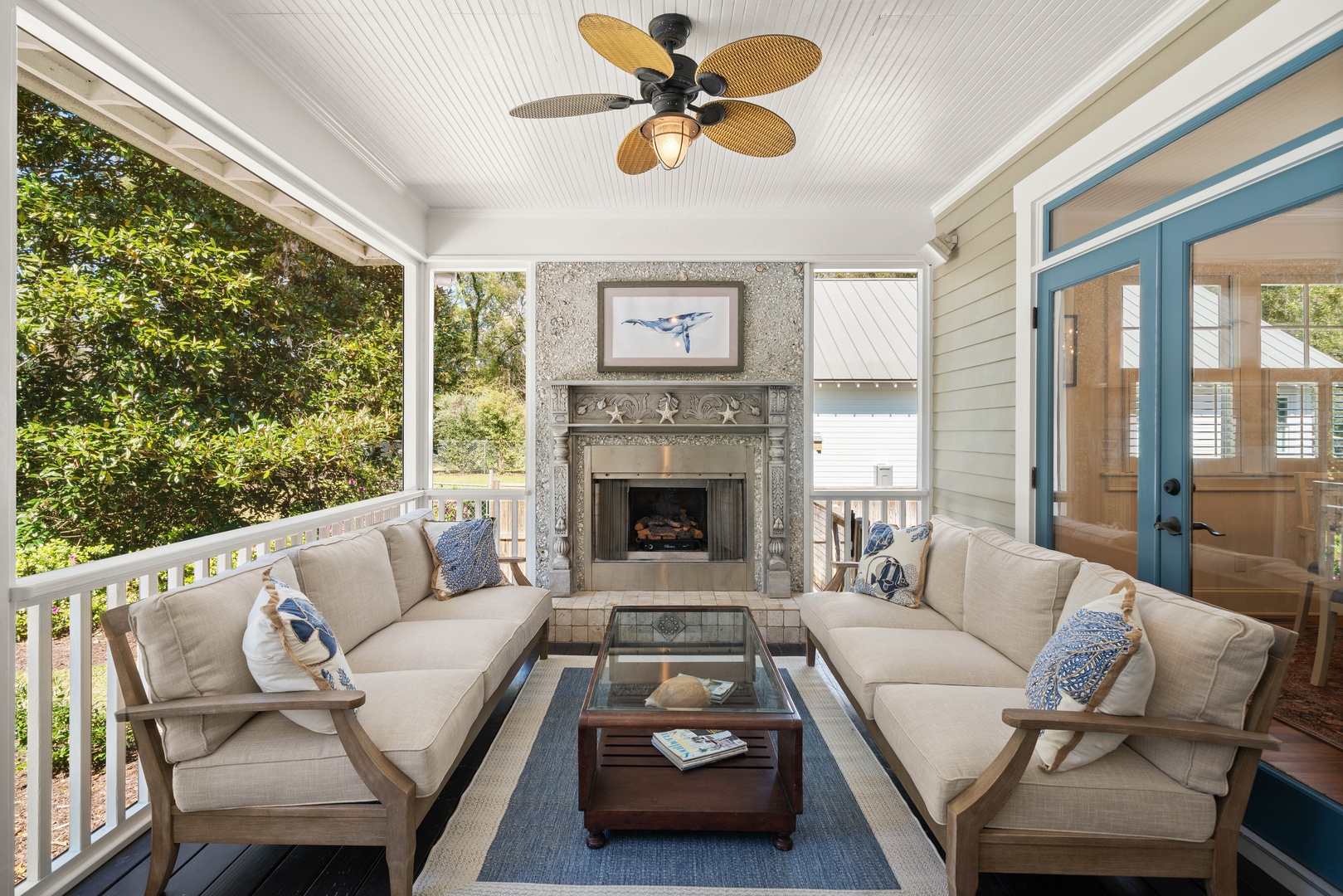 - The screened back porch is our favorite spot - perfect for dining or enjoying quiet time around the outdoor fireplace.
