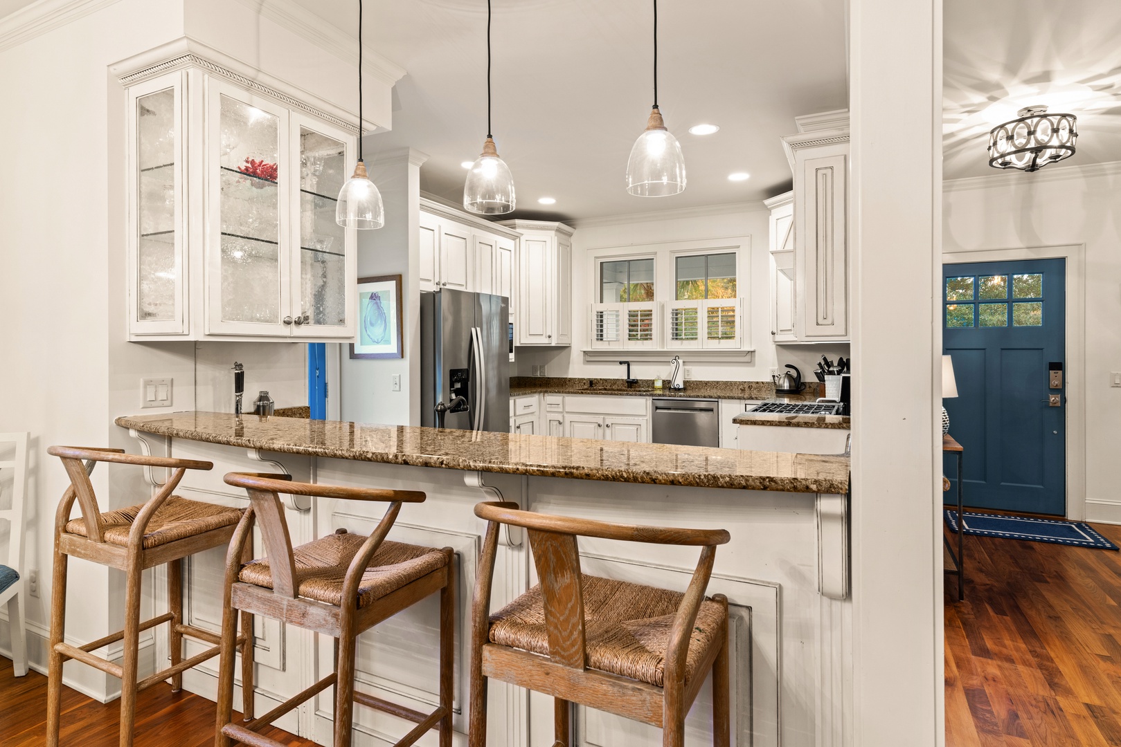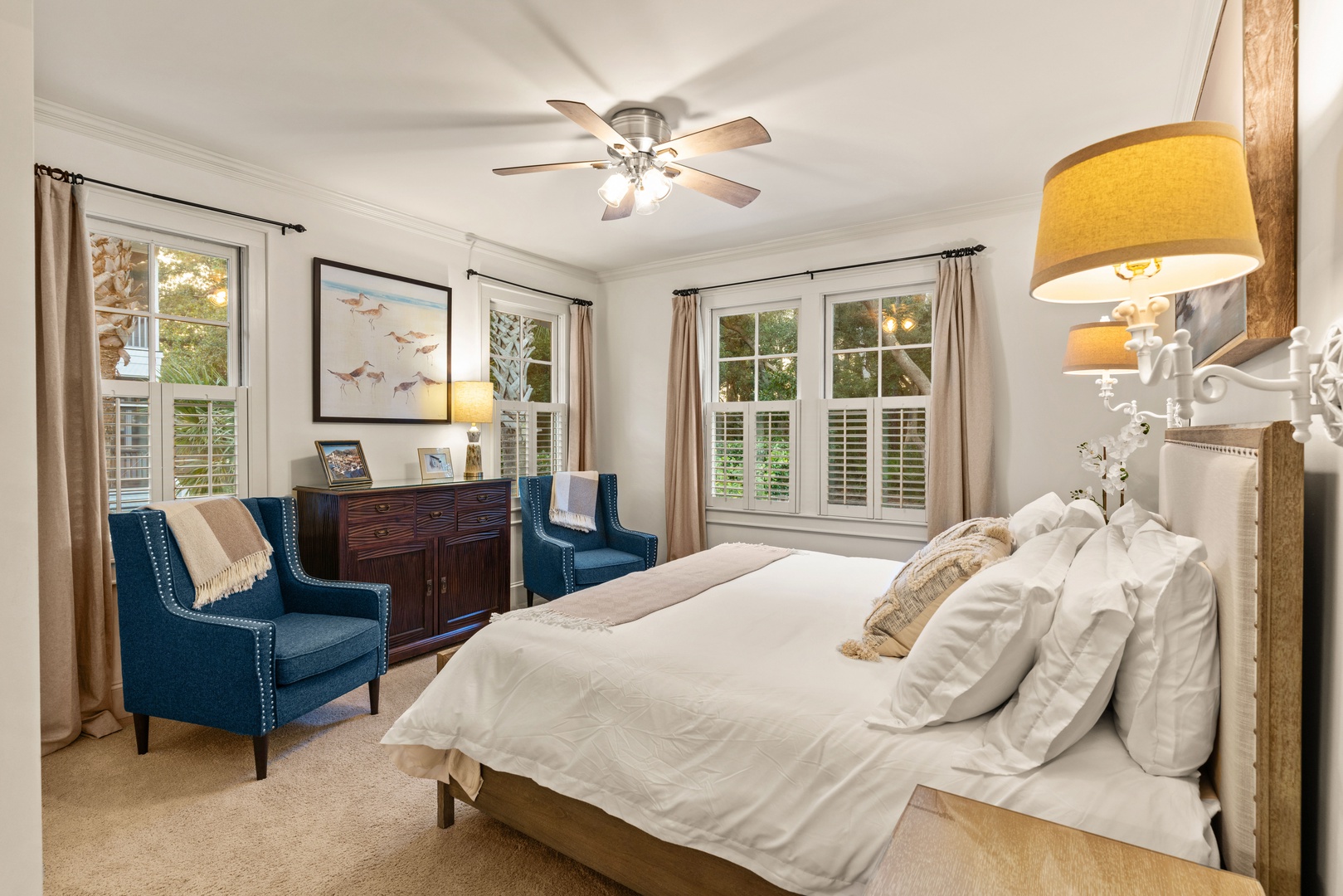 The Heron Cottage is a classically styled St. Simons cottage with a fantastic backyard, a wonderfully private pool and outdoor heated shower and covered bike parking. Beautifully decorated, it is located within a short walk or bike ride to the Village/Pier and beaches, this quiet neighborhood lets you escape the hustle and bustle for a truly serene stay. With 3 bedrooms and 3 baths, this boutique beach cottage is the perfect spot for your island getaway with family or friends.