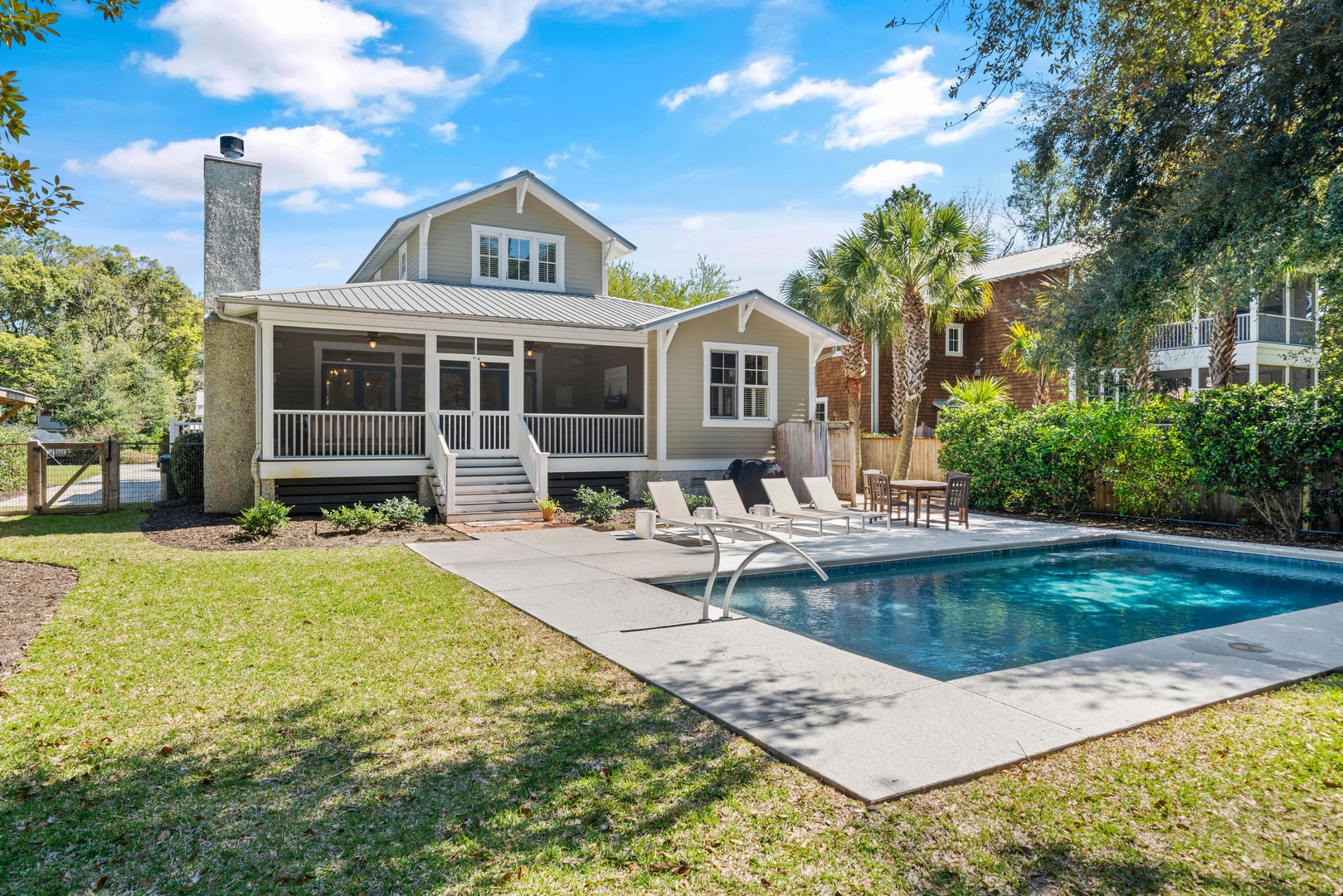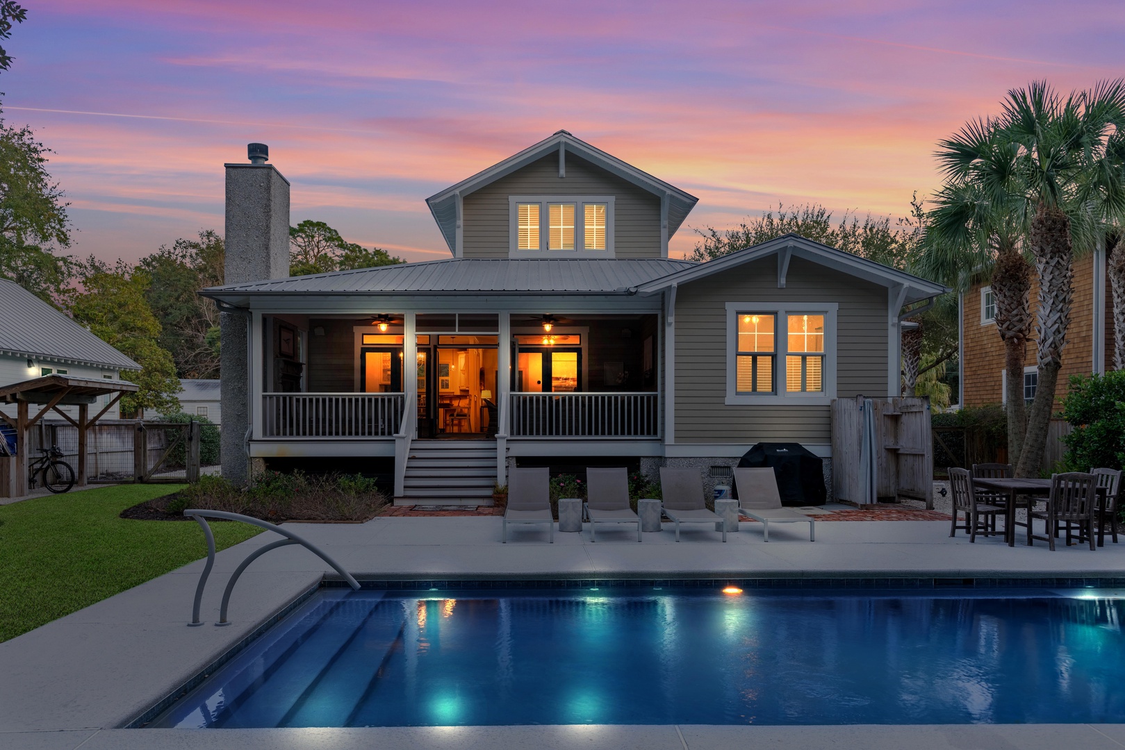 - The pool! Our pool is 15x30 and is surrounded by outdoor seating and a gas grill. The heated outdoor shower is perfect for rinsing the kids from the beaches.