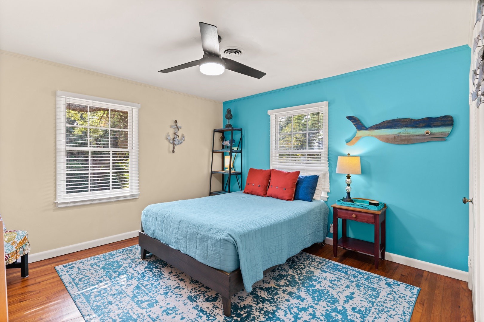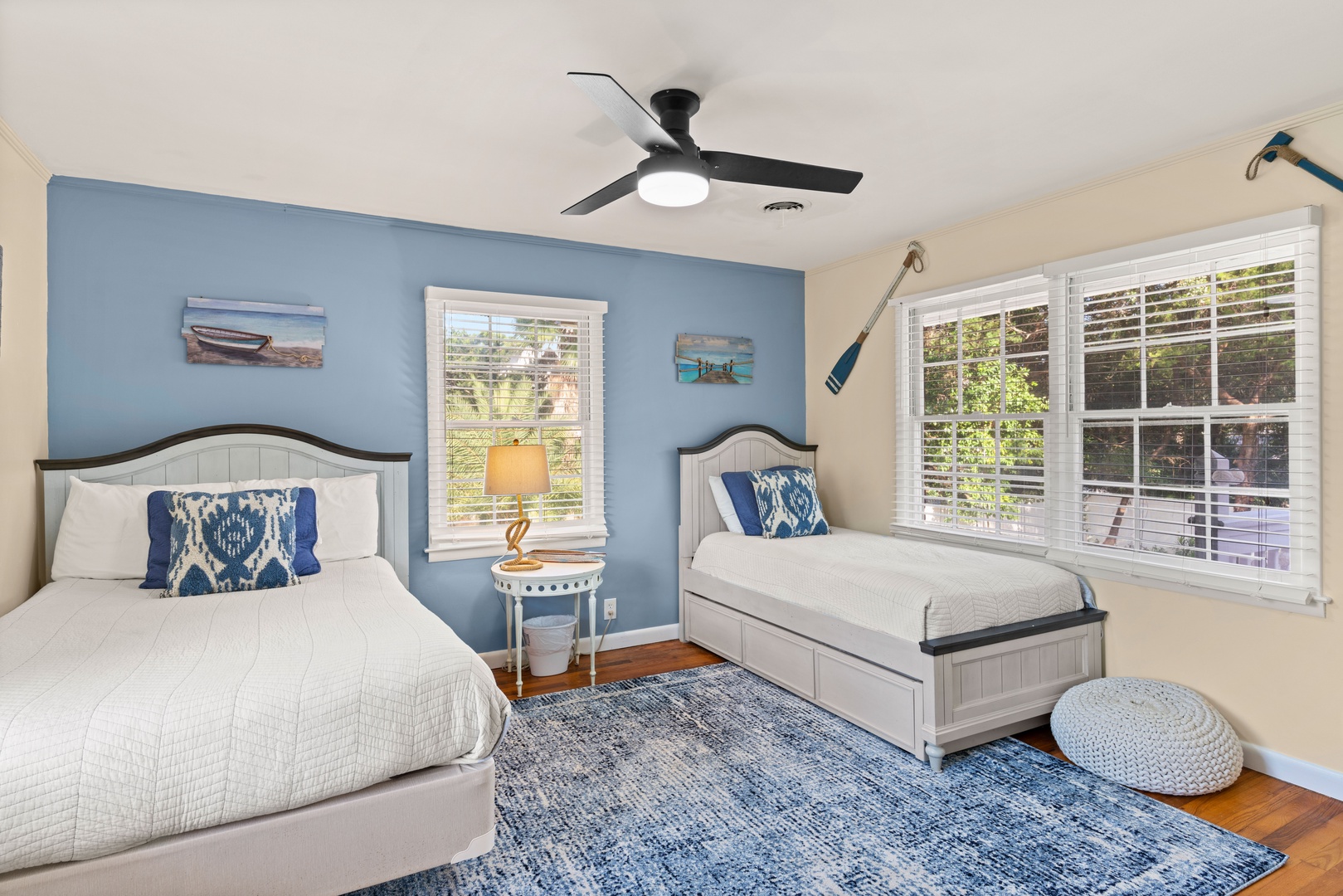 The third bedroom has a queen bed and a twin with a twin trundle.