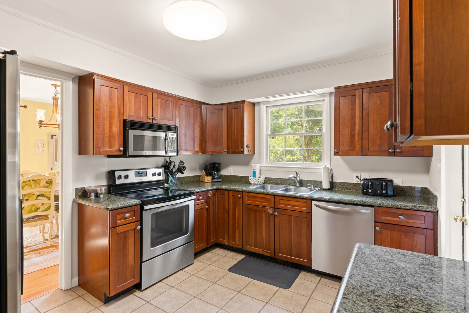 We have a large kitchen, dining area, and comfortable family room to enjoy time together.