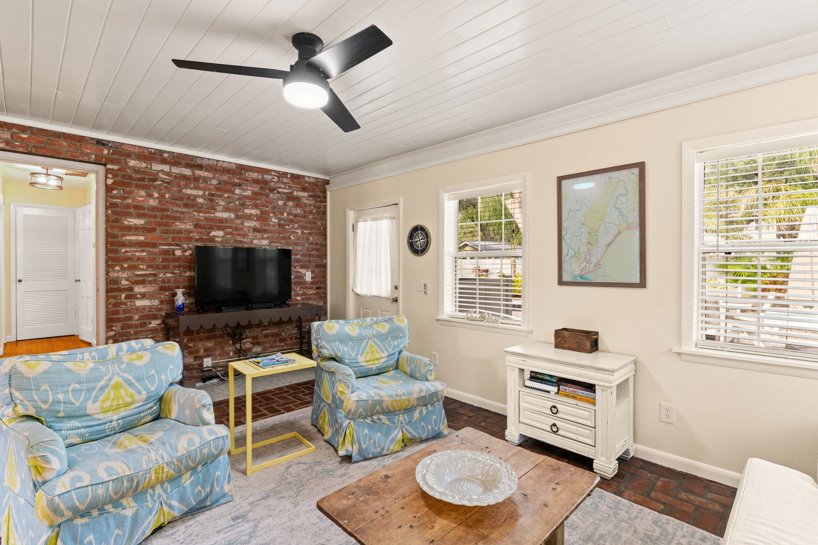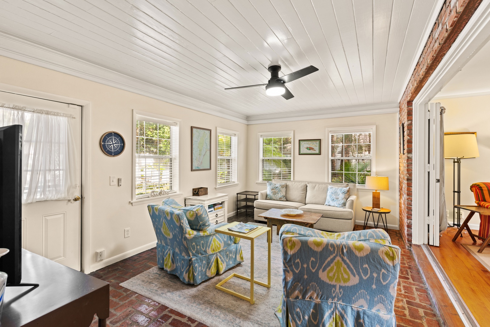 Repainted, newly decorated and with an all new master bath, the home is a timeless classic inside and out, with its colonial brick exterior and warm southern charm inside. The house is casual inside, with a hint of classic St Simons style throughout. We're at the corner of 10th and 11th street on East Beach, making us just 3 houses from the best beach access point on East Beach - the 11th street access. The 11th street beach access is not tide dependent, has scenic natural sand dunes, and very little beach traffic - great for a relaxing day at the beach.
