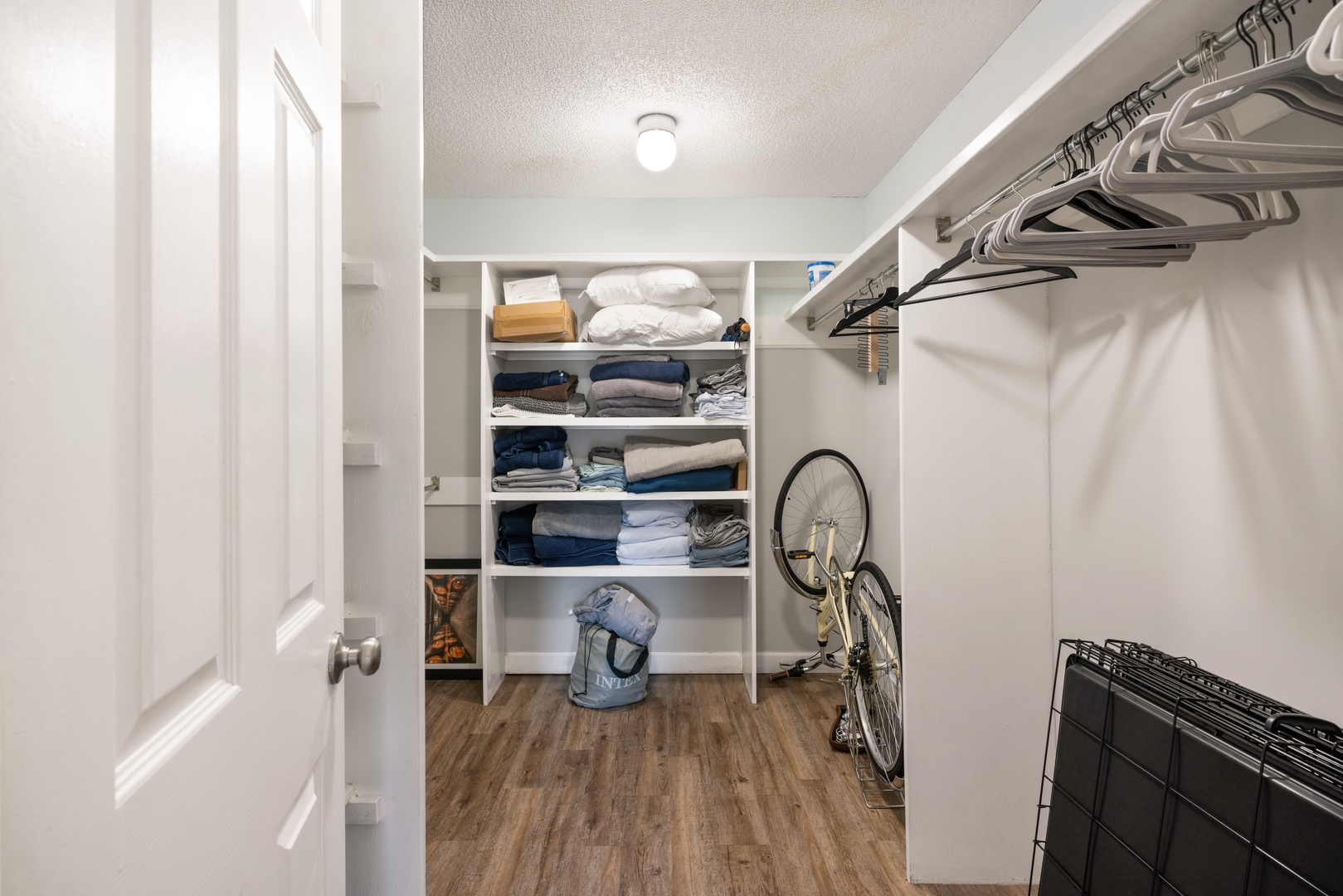 There is a large walk in closet for your use. And the owner has provided 2 crates for your fur babies.