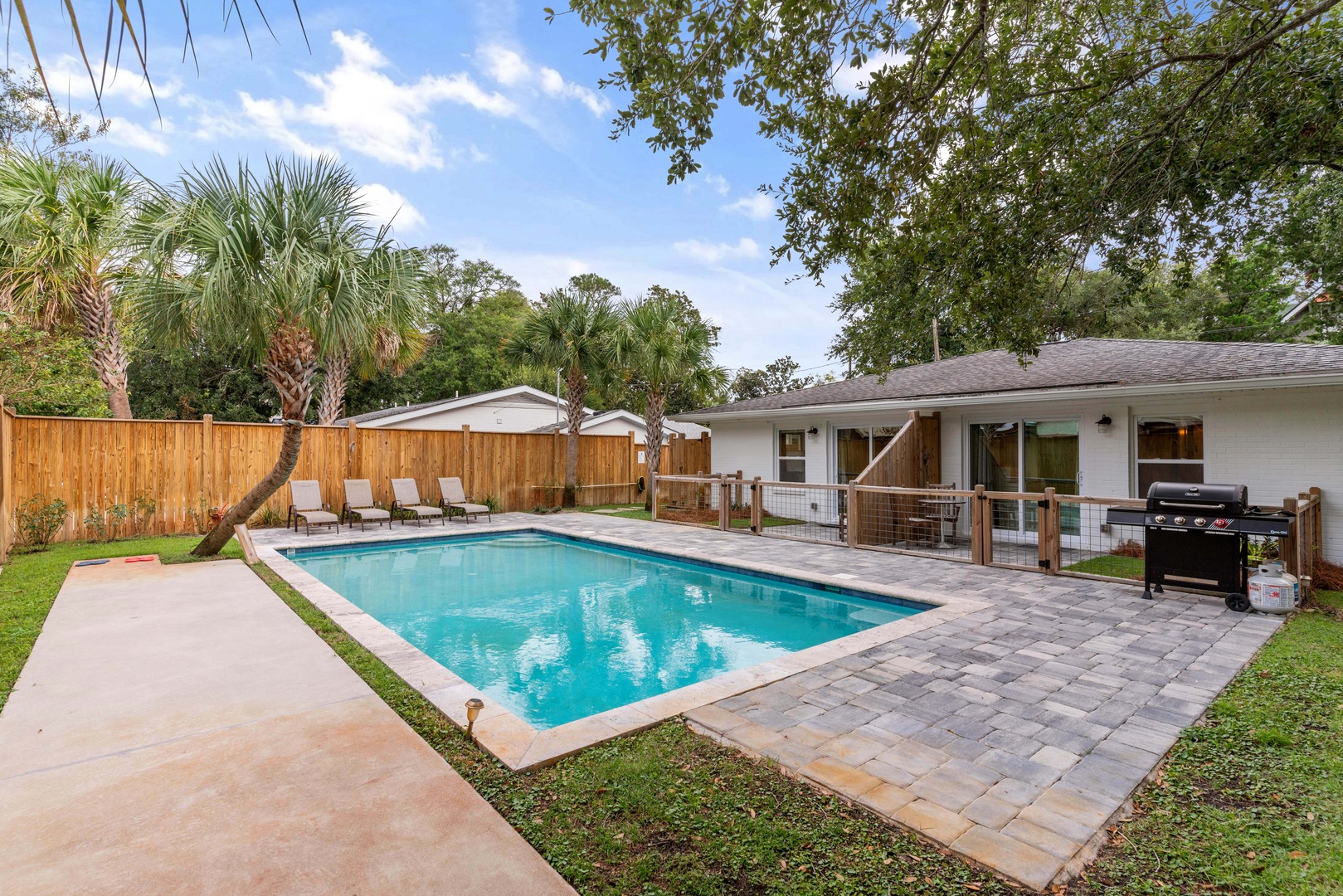 Fully renovated head to toe - you'll love this state of the art property. Brand new baths, kitchen, light colors, new bedding, and great $45k pool. All just a short walk through a quaint neighborhood to the beach. We're 1000 feet from the Myrtle St beach access. The huge pool out back is ready for you to relax and enjoy!