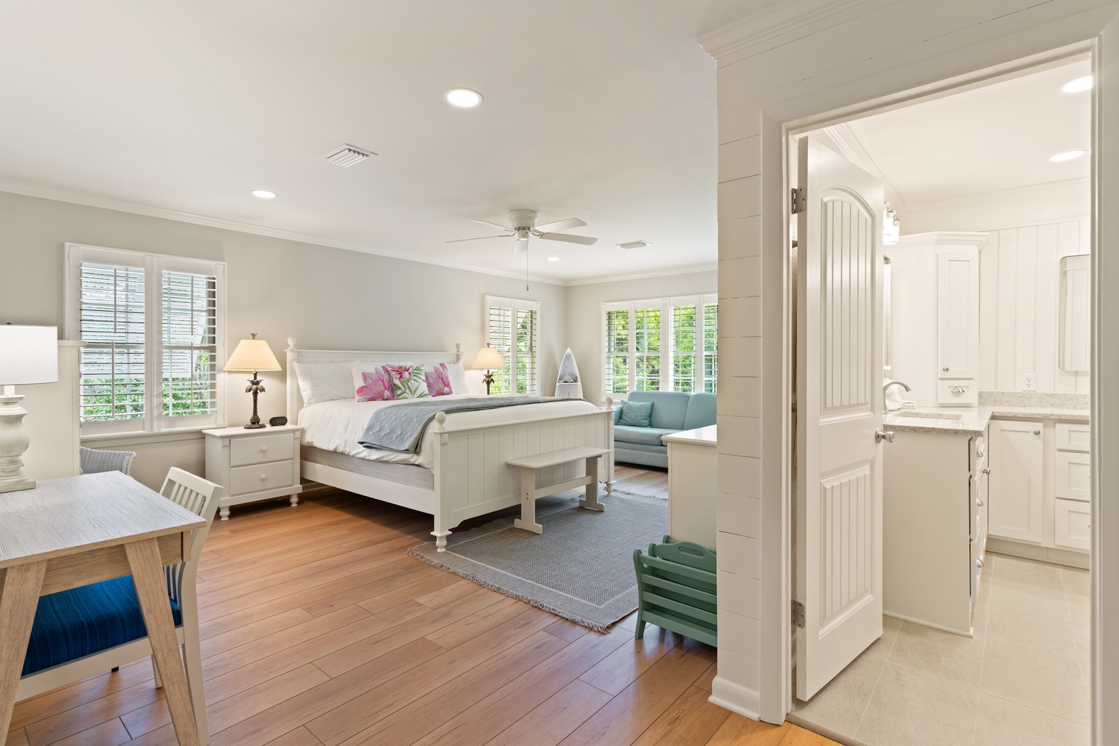 Bedroom 2 (sleeps 2) Primary bedroom, King bed with adjoining bathroom. Bathroom has a separate water closet, shower and soaking tub.
