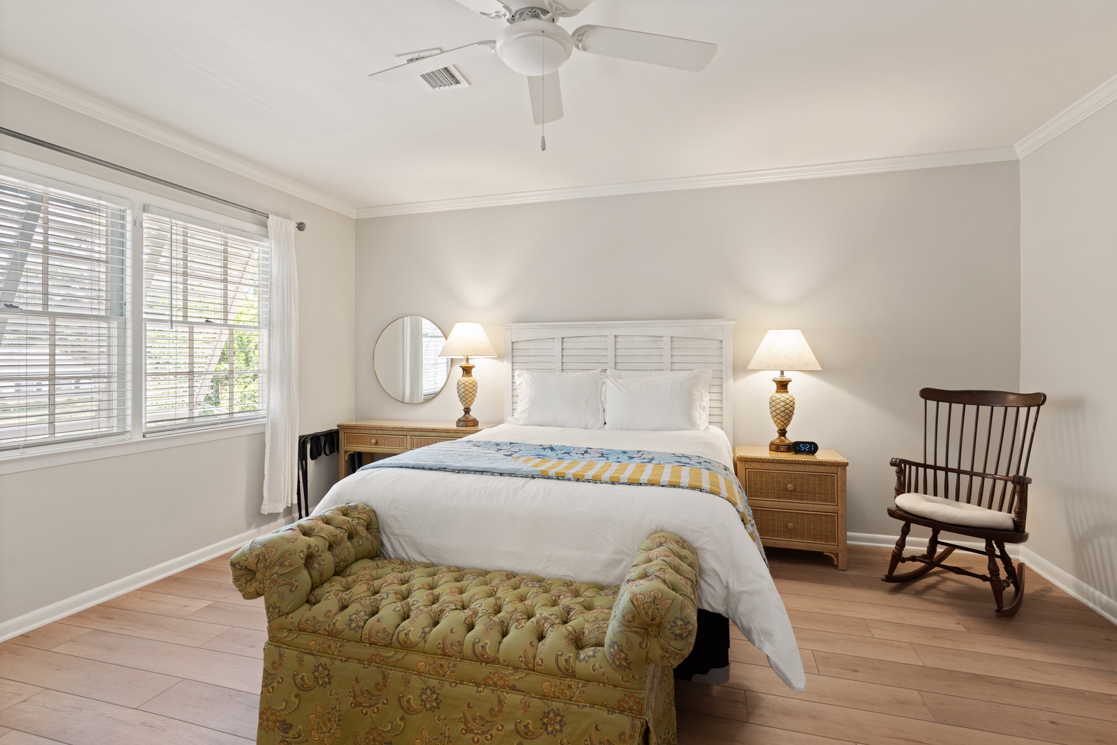 Bedroom 1 (sleeps 2) Located on the main level is a bedroom with a Queen bed and shares the bathroom located in the hall with a shower.