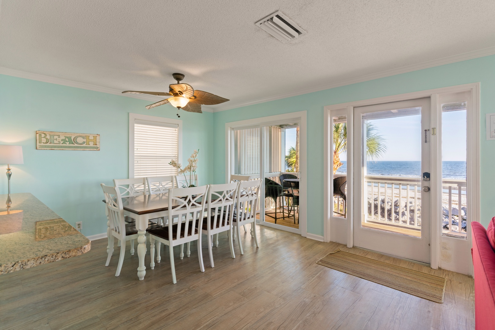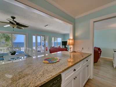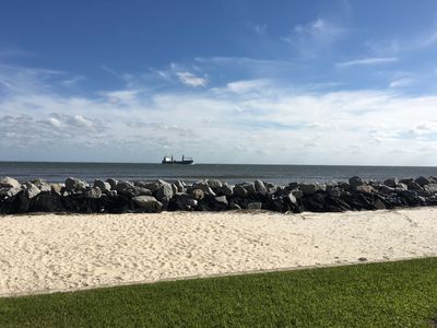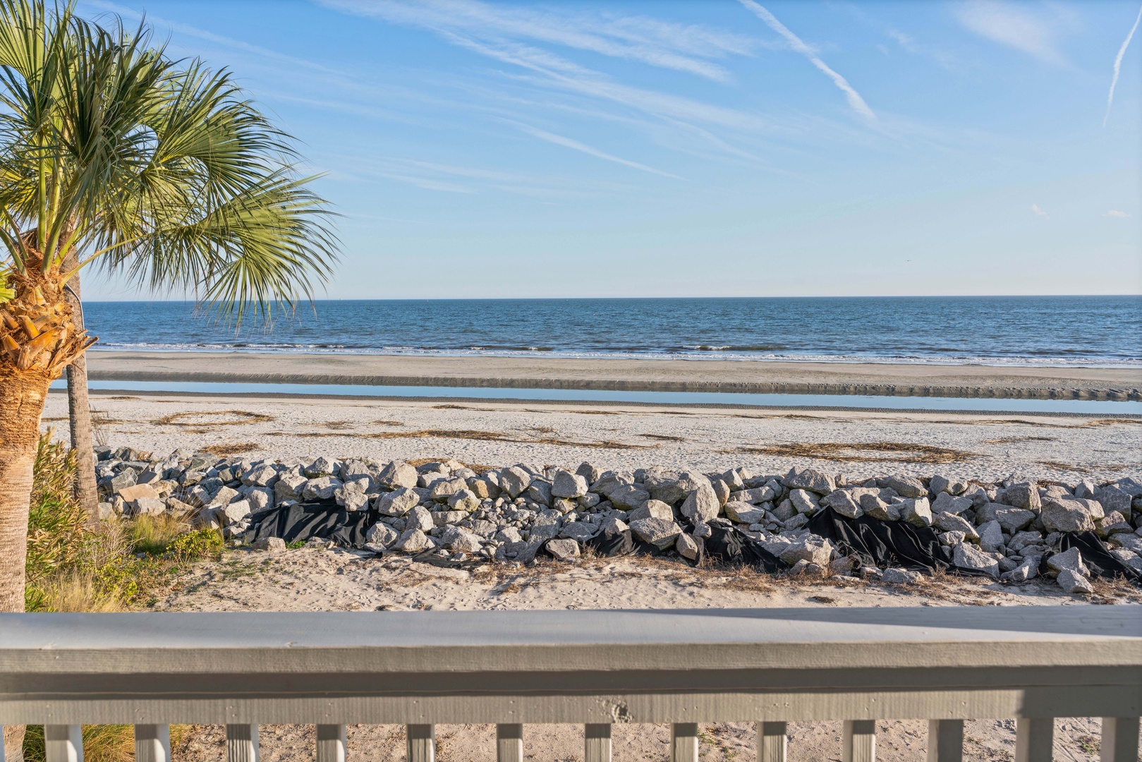 SEACLUSION is located directly on the sandy shore of the Atlantic Ocean, within one-half mile or a 10-minute walk to the village/pier area. Our home has recently been renovated and features a DIRECT and UNOBSTRUCTED VIEW of the Atlantic Ocean, the beach, the shipping channel, and Jekyll Island. You will have peace and quiet in your private beachfront backyard while enjoying 180-degree beautiful ocean views from your living room, open kitchen, and dining room through two sets of big glass sliders. You can see Jekyll Island and Cumberland Island from the patio and living room, and throughout the day you can experience the ever-changing tidal patterns that come with the ocean's gentle ebb and crashing flow on the rocks in front of SEACLUSION.
