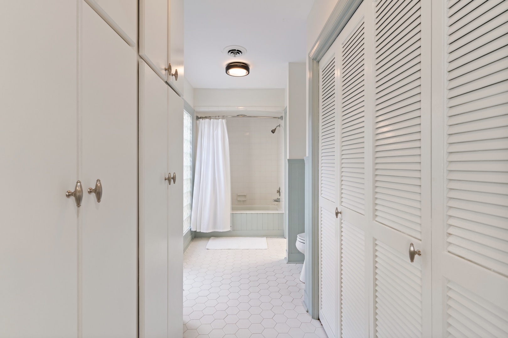 There is a hall bath with shower.