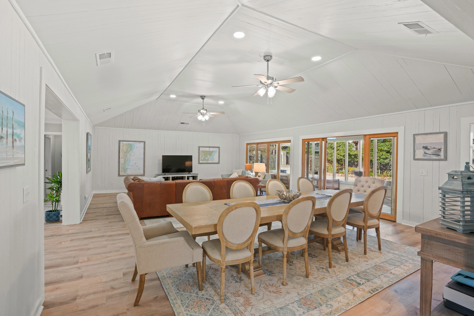 Enter at the front door into the conversation/sitting area, which opens into the large family room, and dining room for 8. The newly remodeled kitchen features stainless appliances to include agas range, microwave hood and French door refrigerator with indoor ice and water.