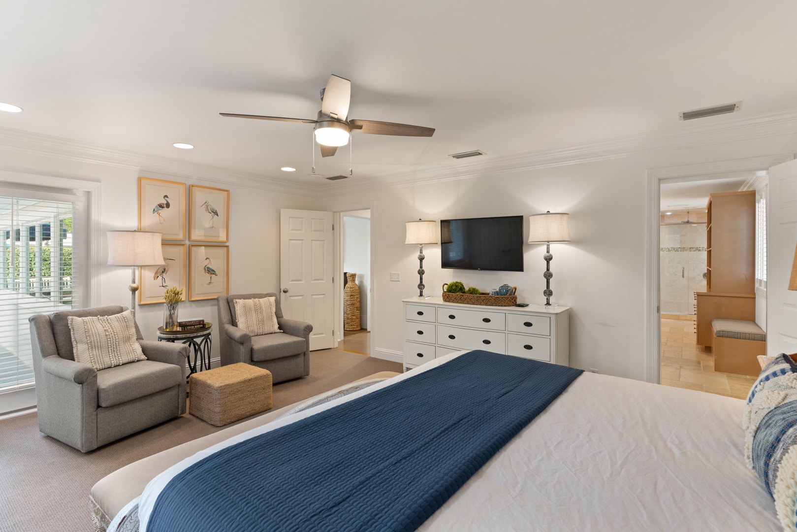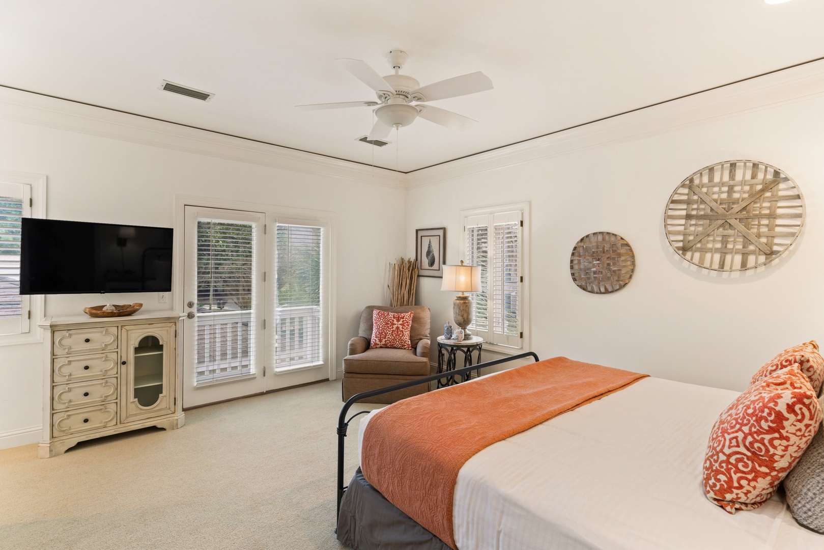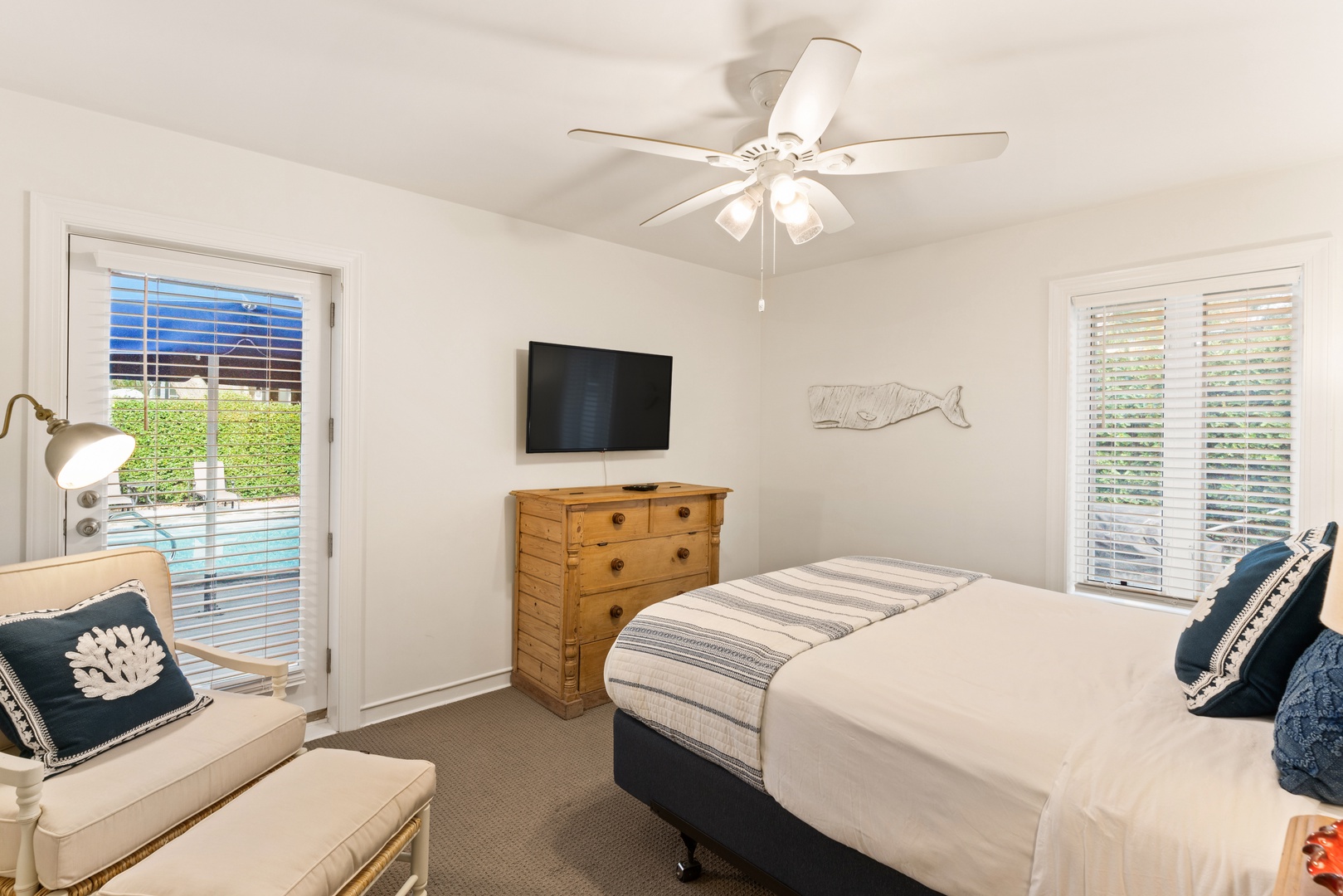 Bedroom 1 – Primary, King, TV with access to the pool area