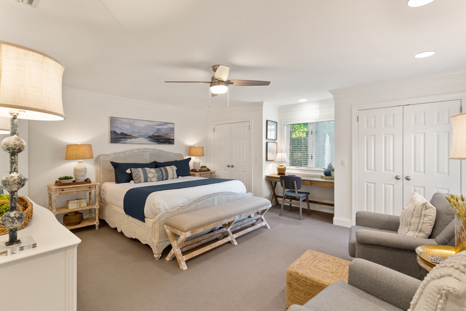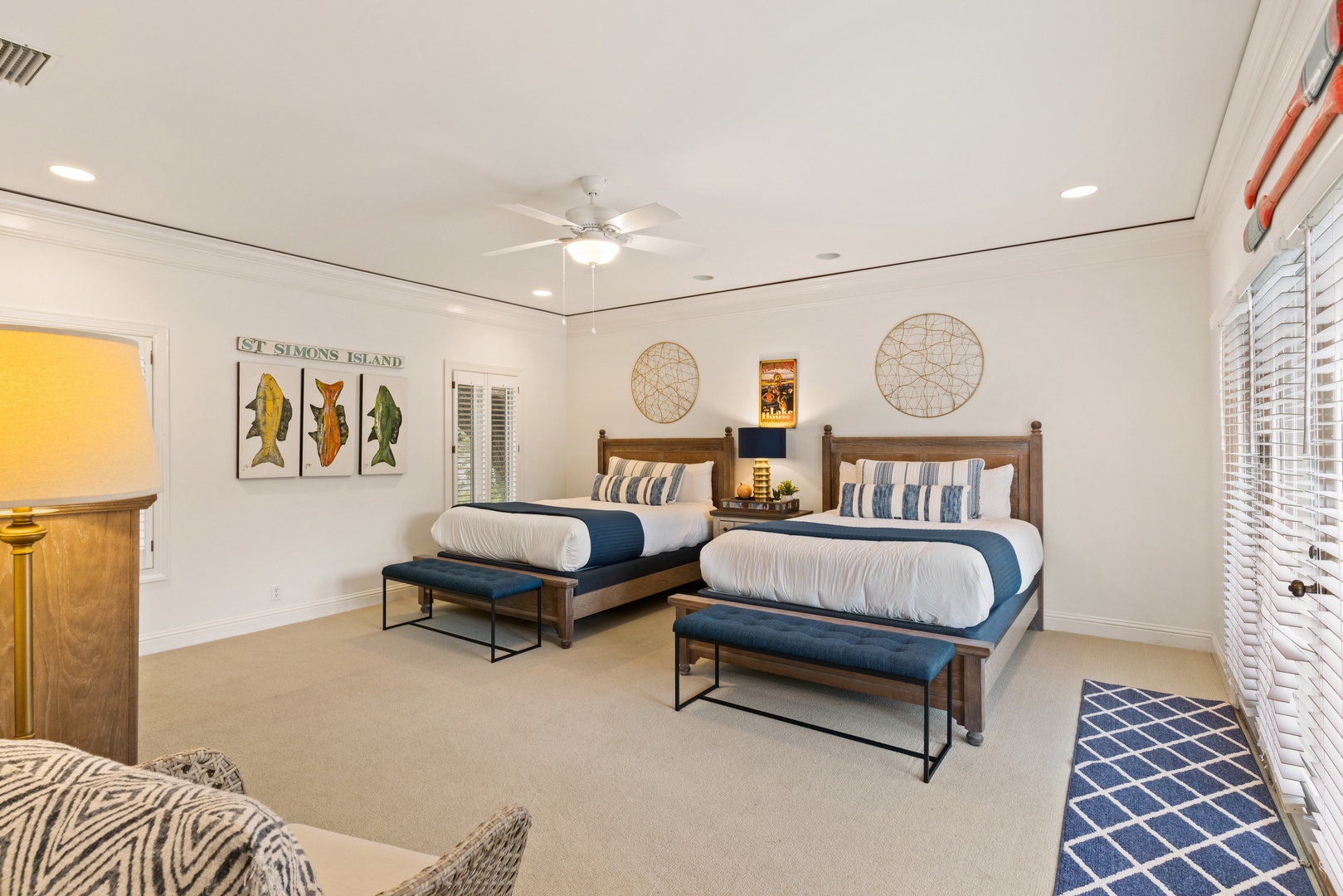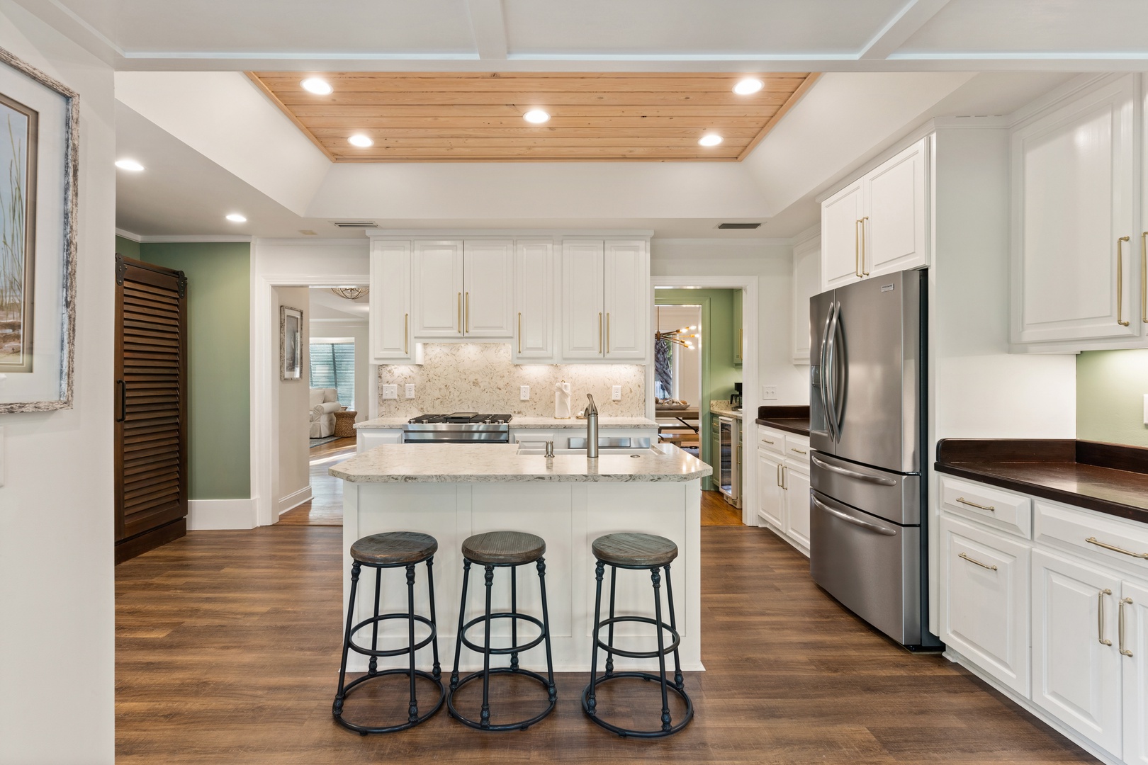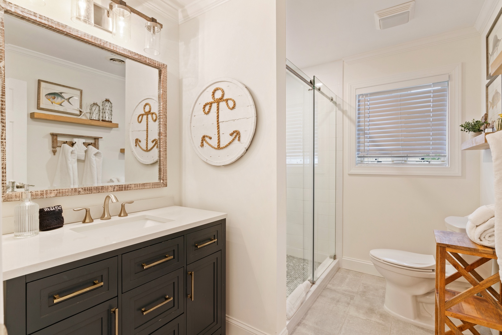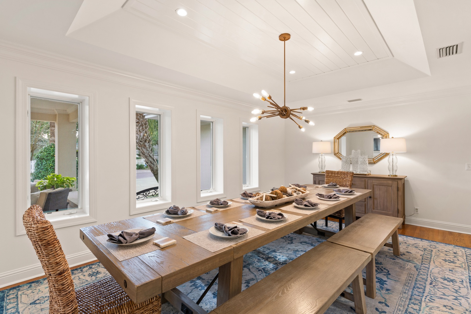 Escape to tranquility and rejuvenate your spirit at The Southern Whippoorwill, a charming retreat just a stone's throw from the Fifth Street Beach Entrance. This elegant and spacious home offers the perfect blend of comfort and sophistication, featuring three luxurious bedroom suites, each with its own private bathroom, and an additional guest room with a conveniently located shared hall bathroom.