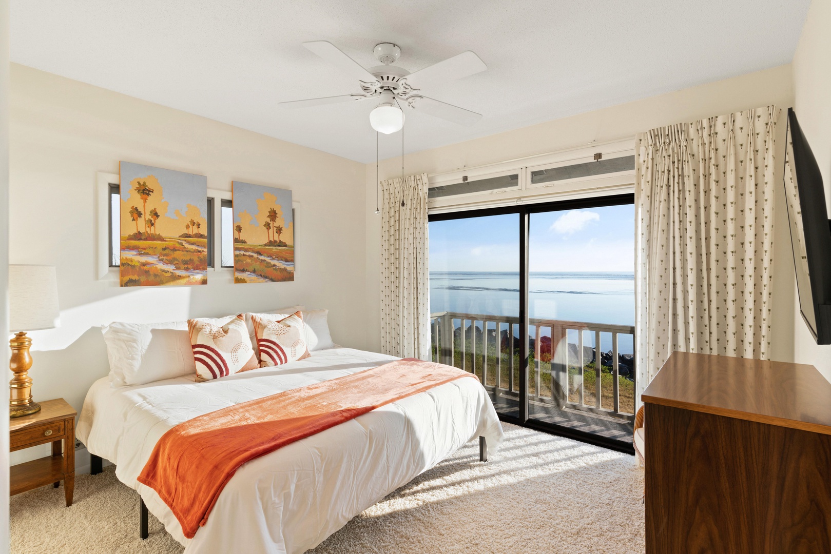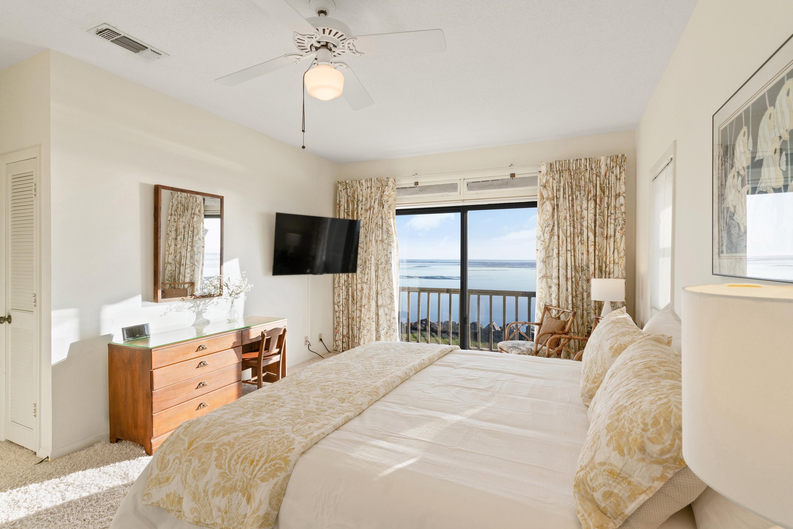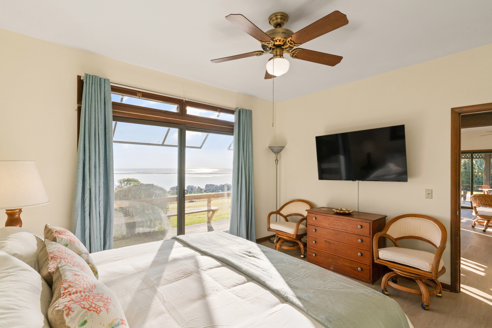 King guest bedroom: The second room has an ocean front view and king bed. There's a big flat screen TV.