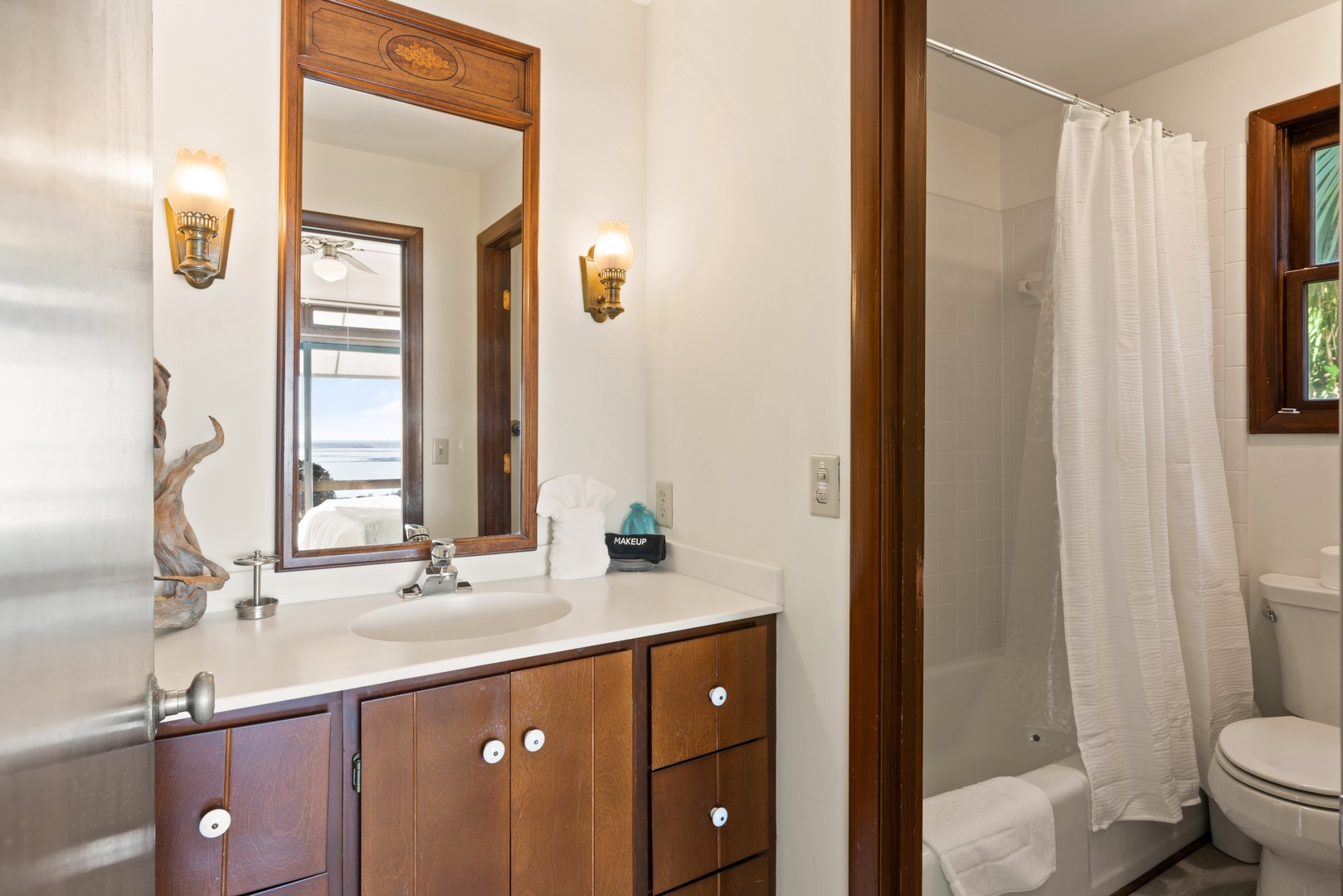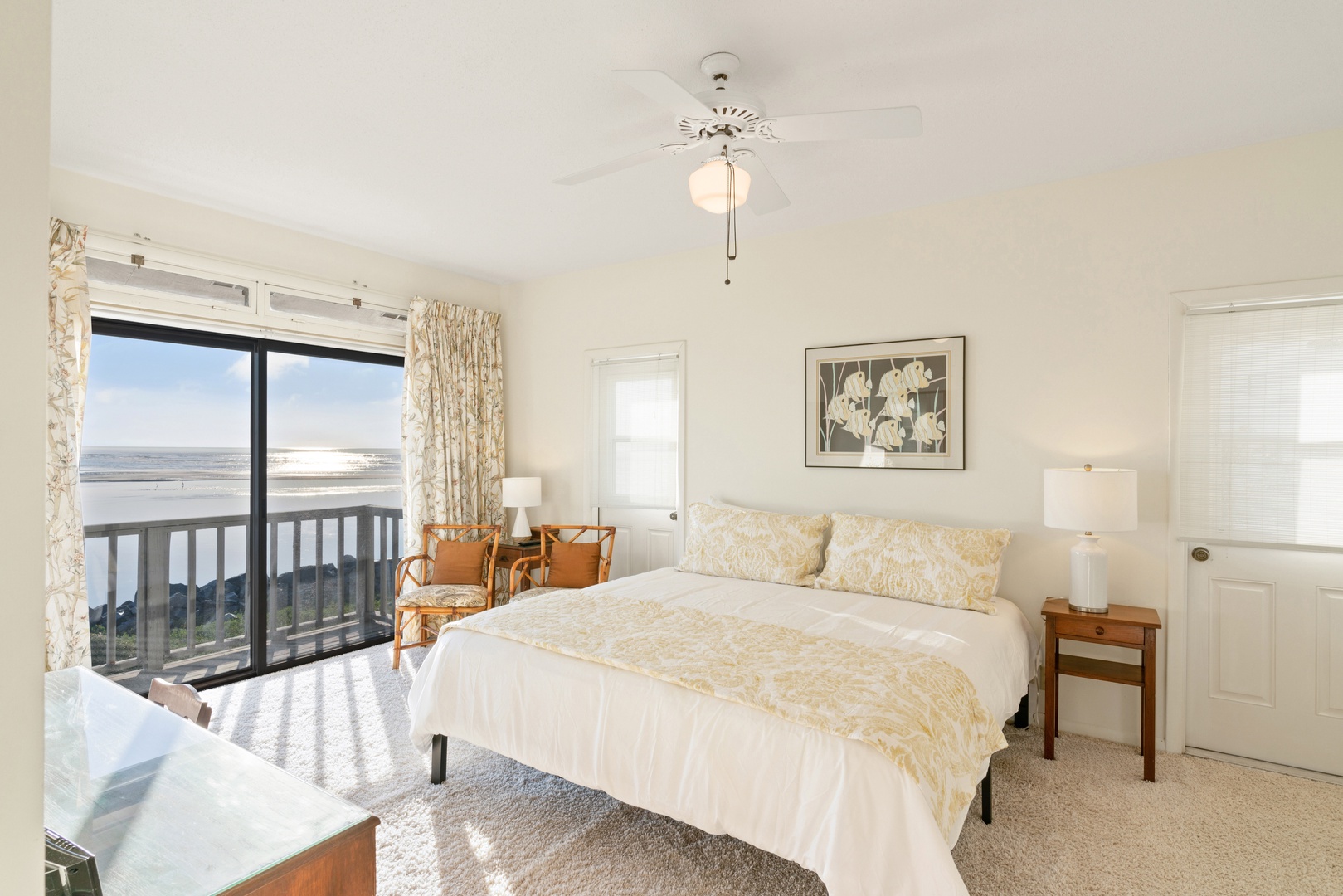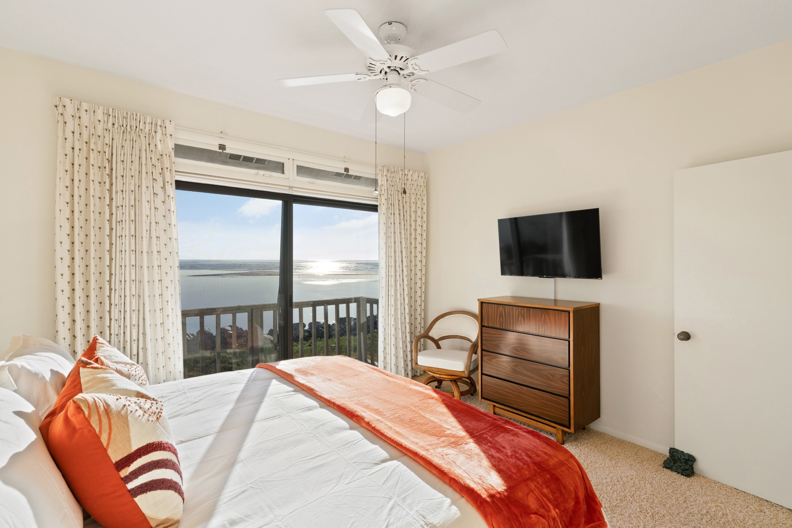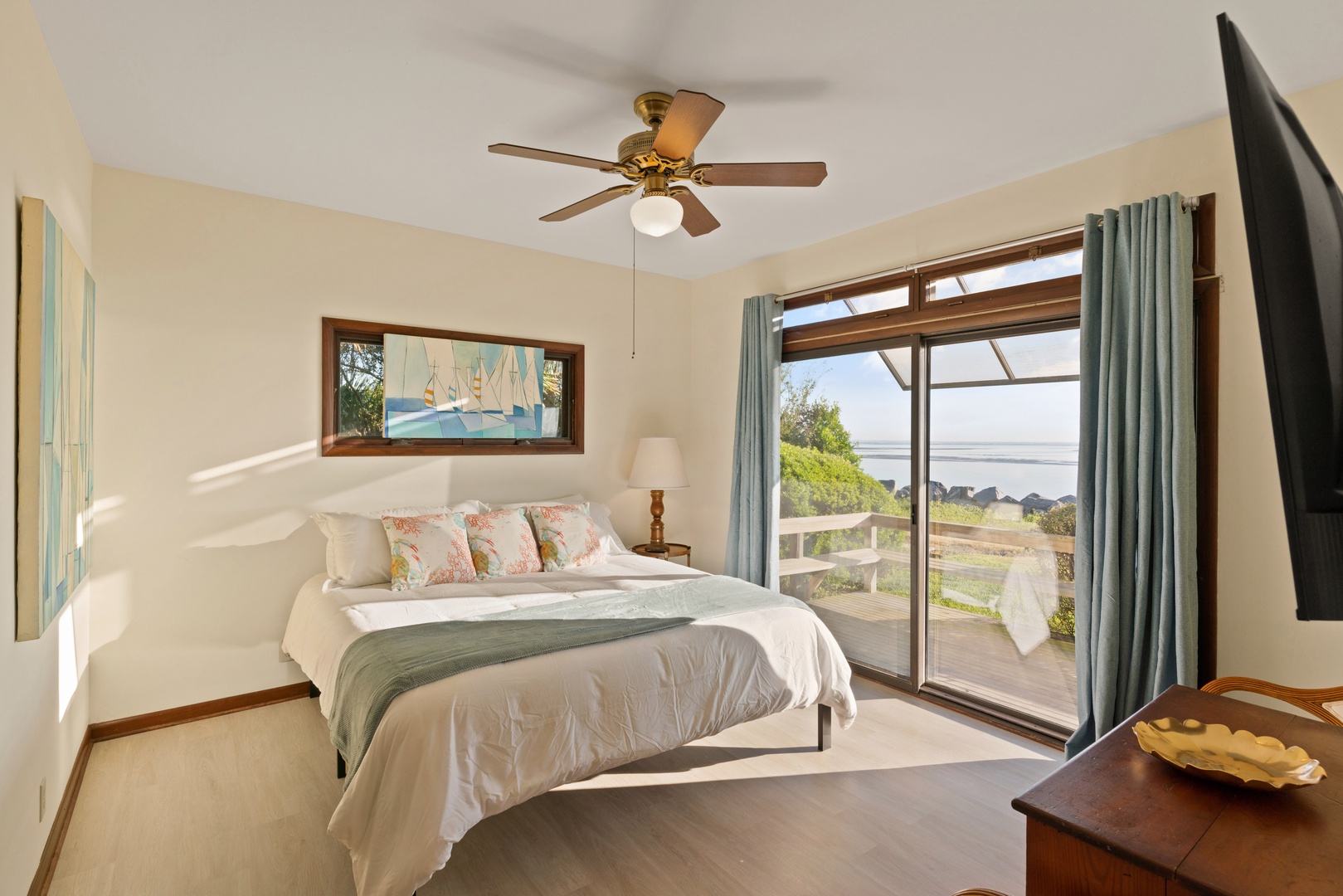 King guest bedroom: The second room has an ocean front view and king bed. There's a big flat screen TV.