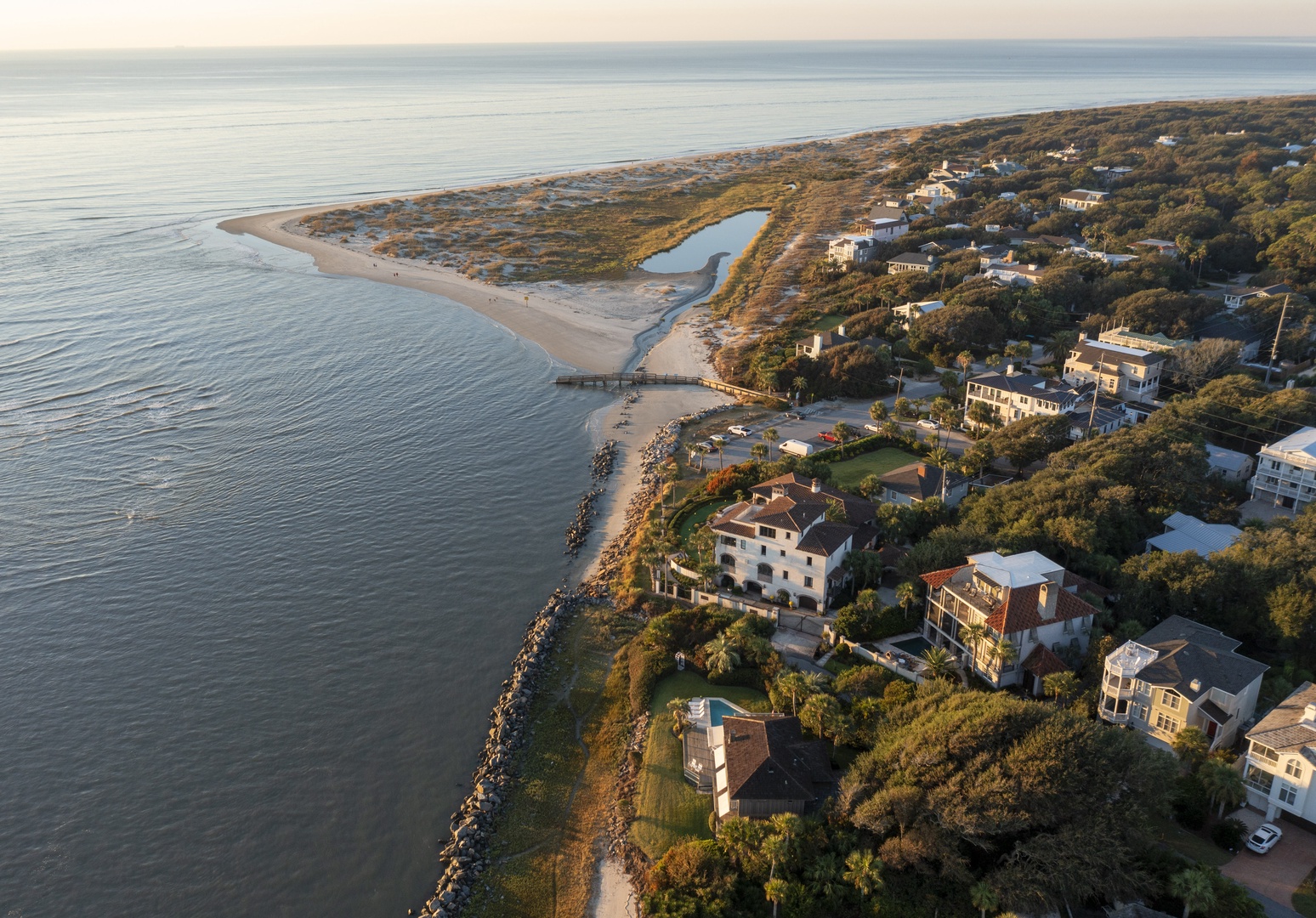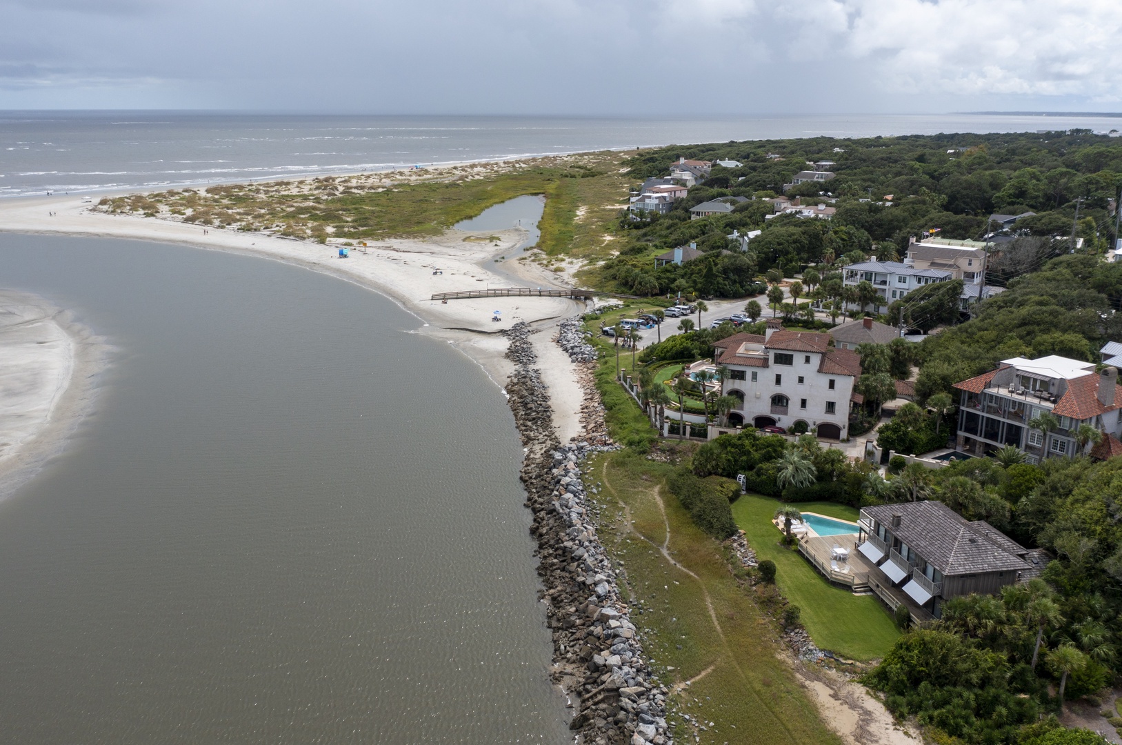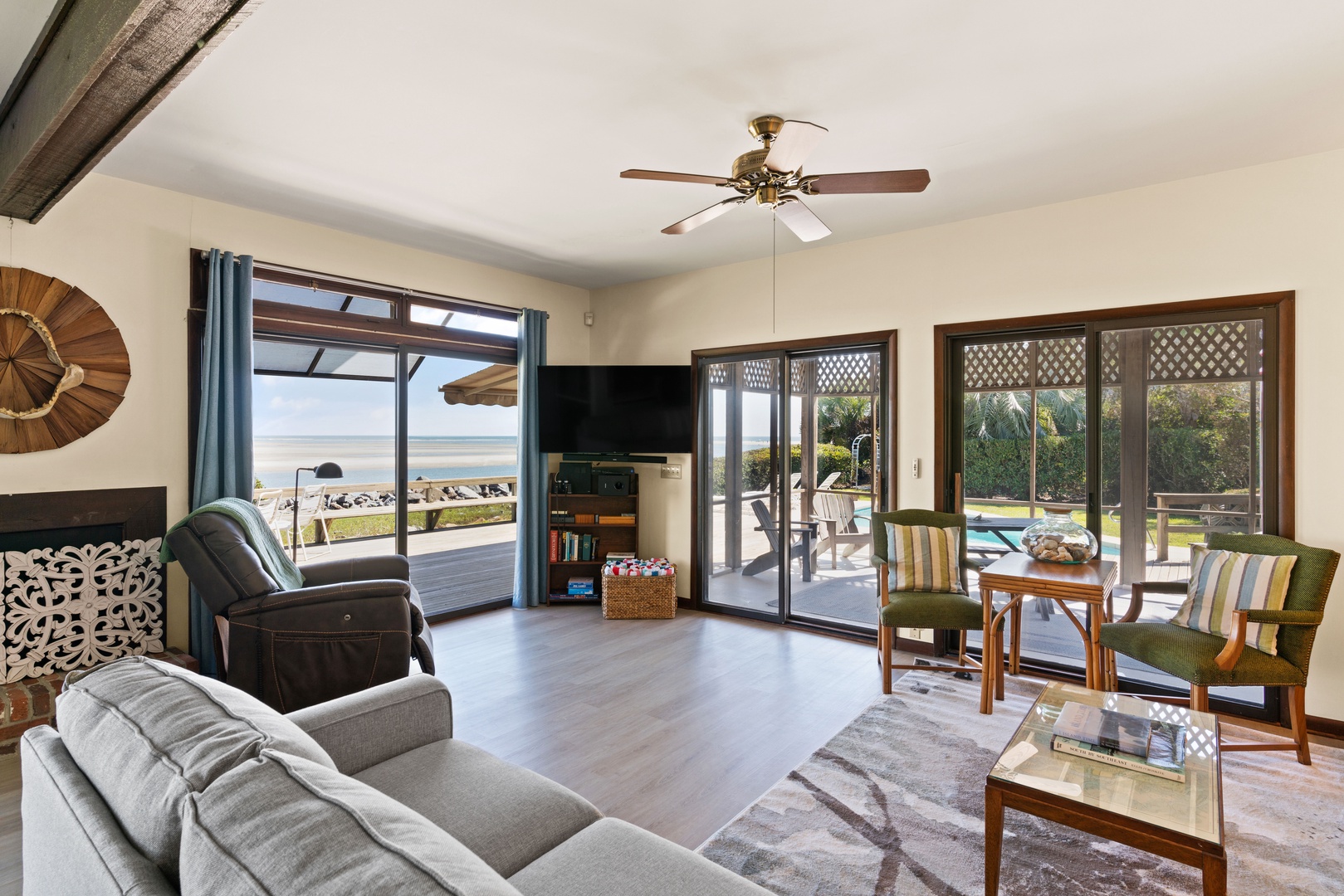 The first floor is designed as a place for your family to enjoy one another and enjoy the beach and heated pool. The large living room and dining room provides ocean views from nearly every spot - back of the house is a wall of windows looking out over the Atlantic Ocean with views of the Sea Island.