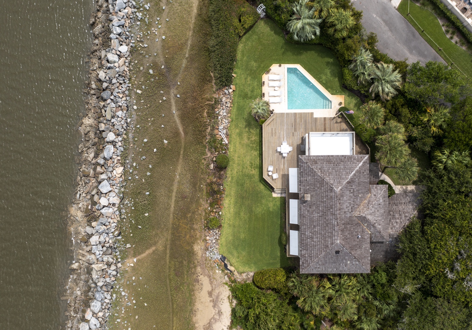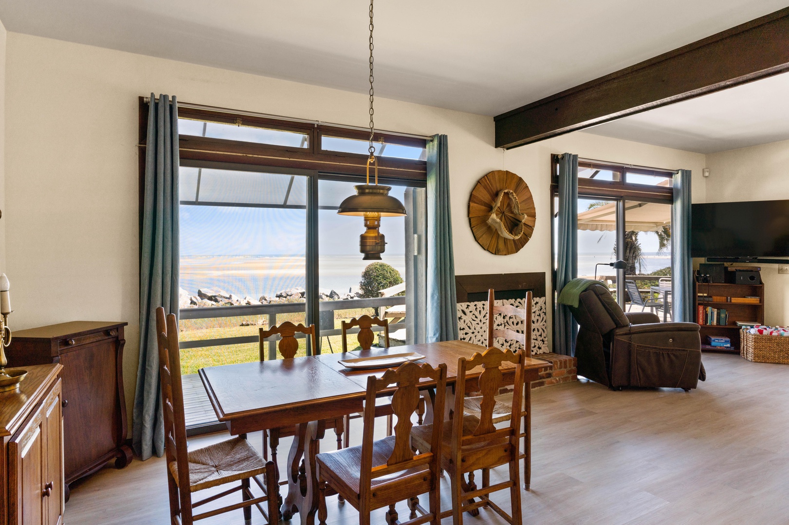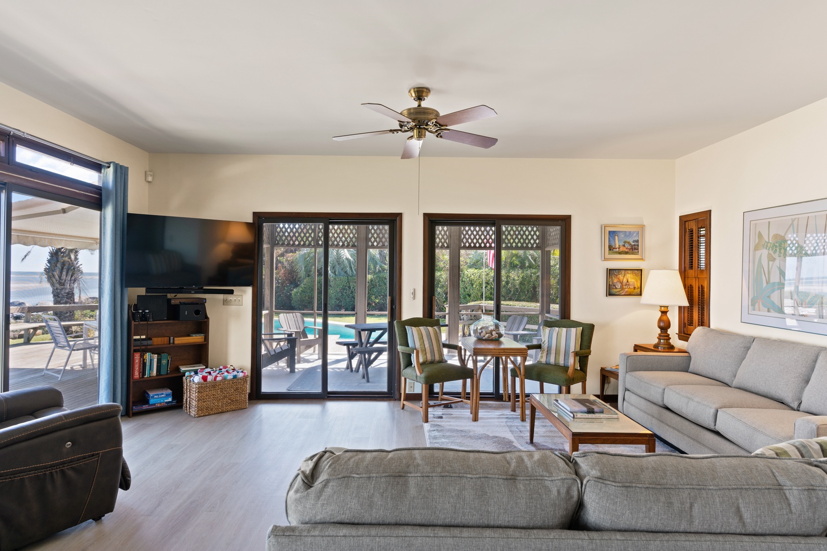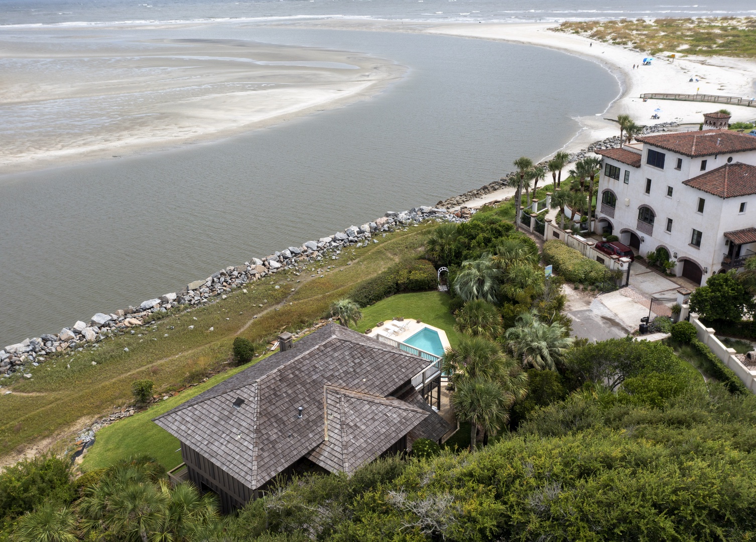 The first floor is designed as a place for your family to enjoy one another and enjoy the beach and heated pool. The large living room and dining room provides ocean views from nearly every spot - back of the house is a wall of windows looking out over the Atlantic Ocean with views of the Sea Island.