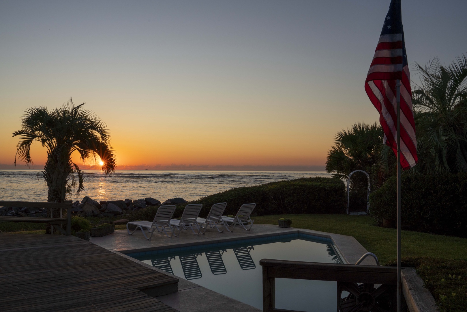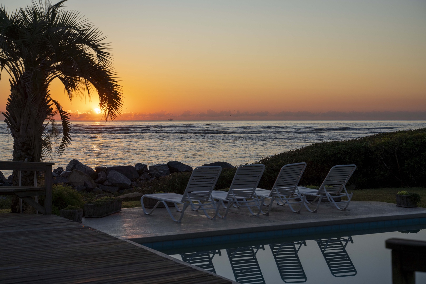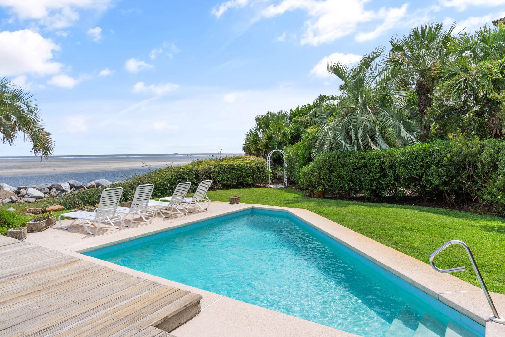 The ocean front pool is like no other option on St Simons. The ocean facing side has a sunning deck that hosts 4 beach chairs so you can enjoy the sun, views, and sounds of the water without leaving the back yard. There is also a large covered porch off the living room that provides shade while you enjoy all the views and ocean breezes. The pool can be heated for a $75/night fee. (see details)