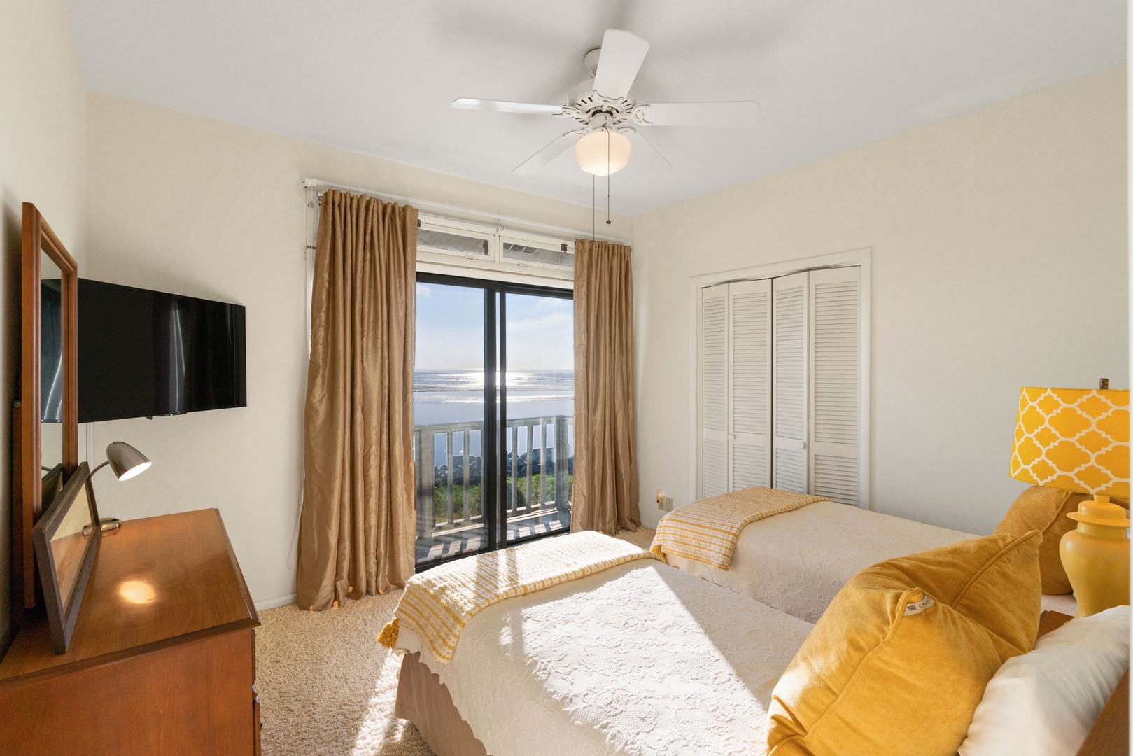 Twin guest bedroom: The third bedroom has a twin bed, big flat screen TV, and lots of natural light from floor to ceiling windows.