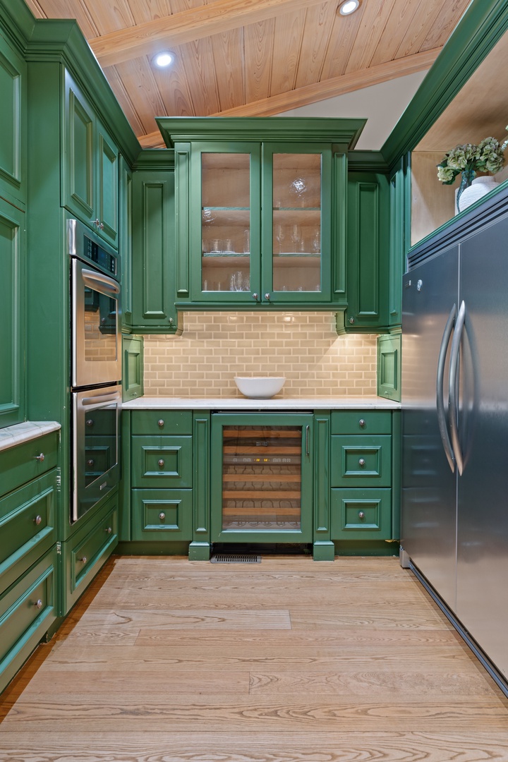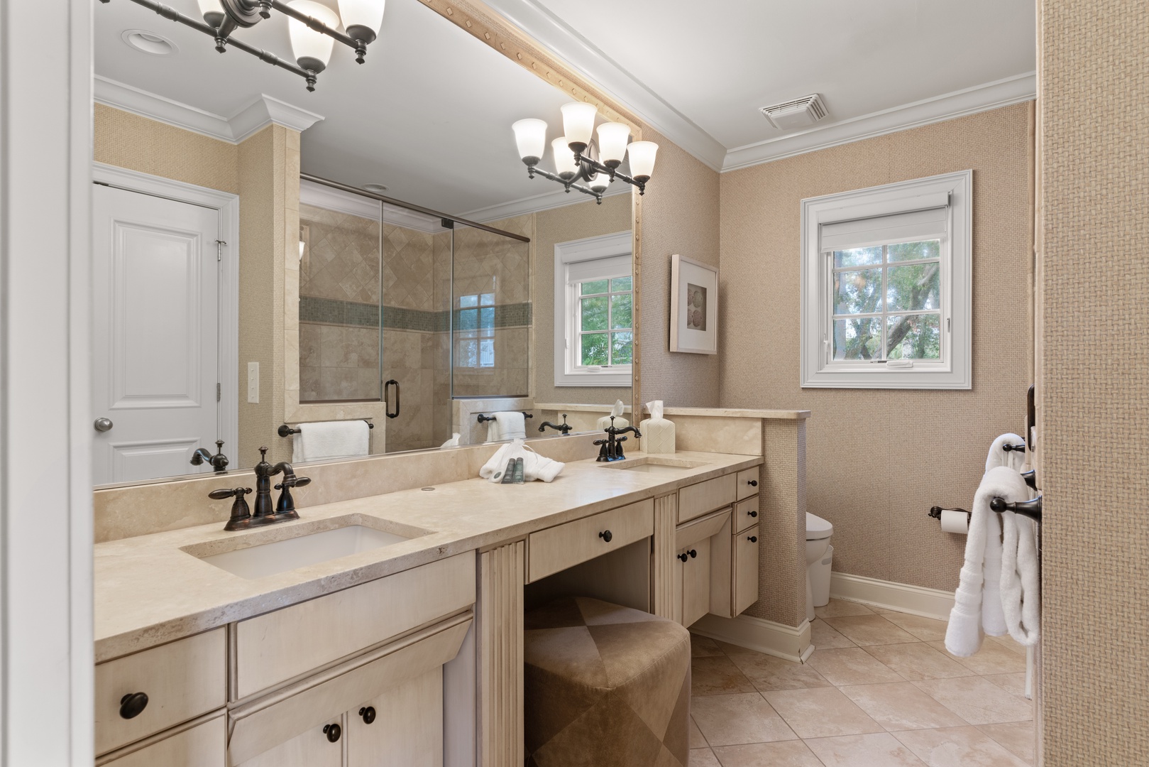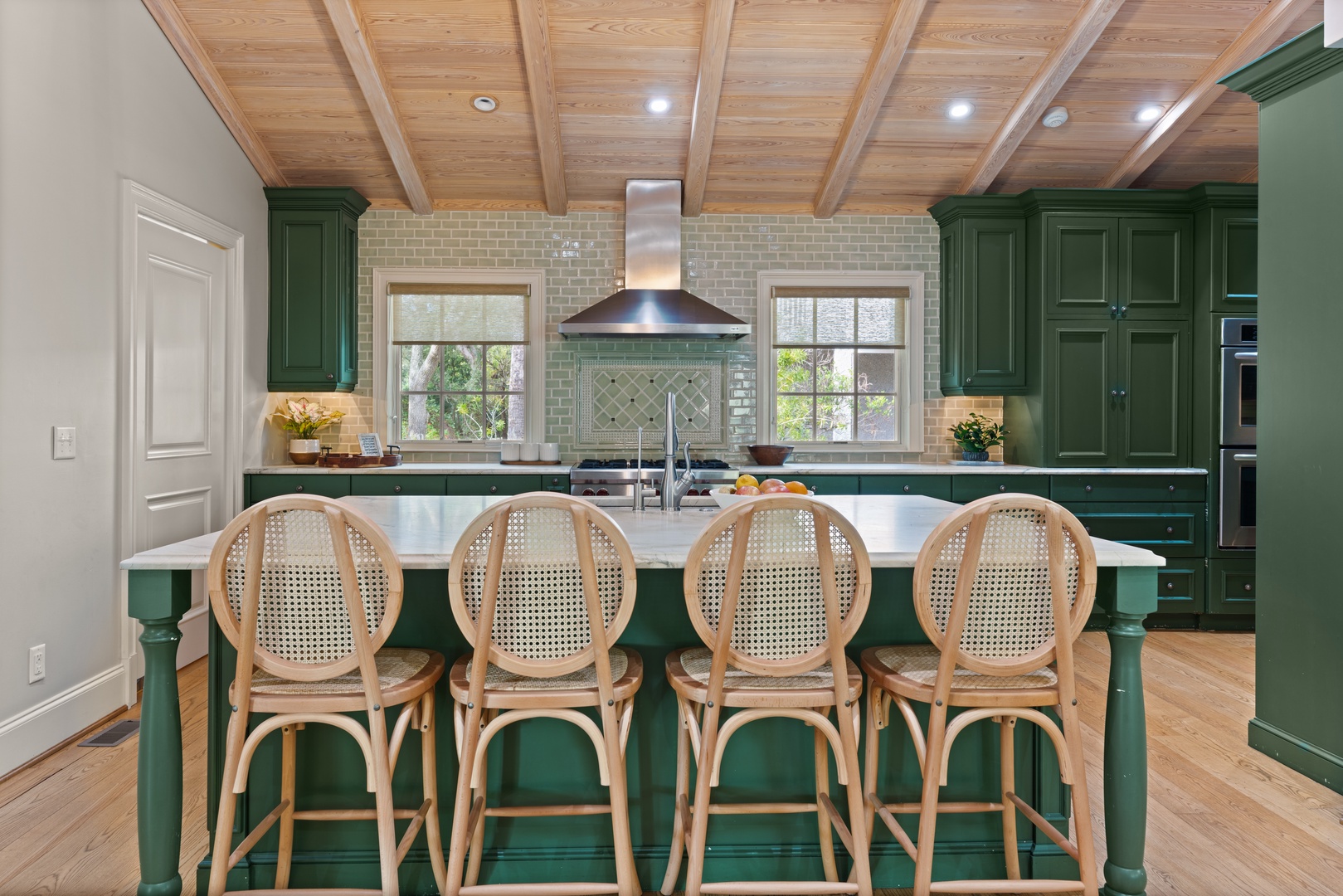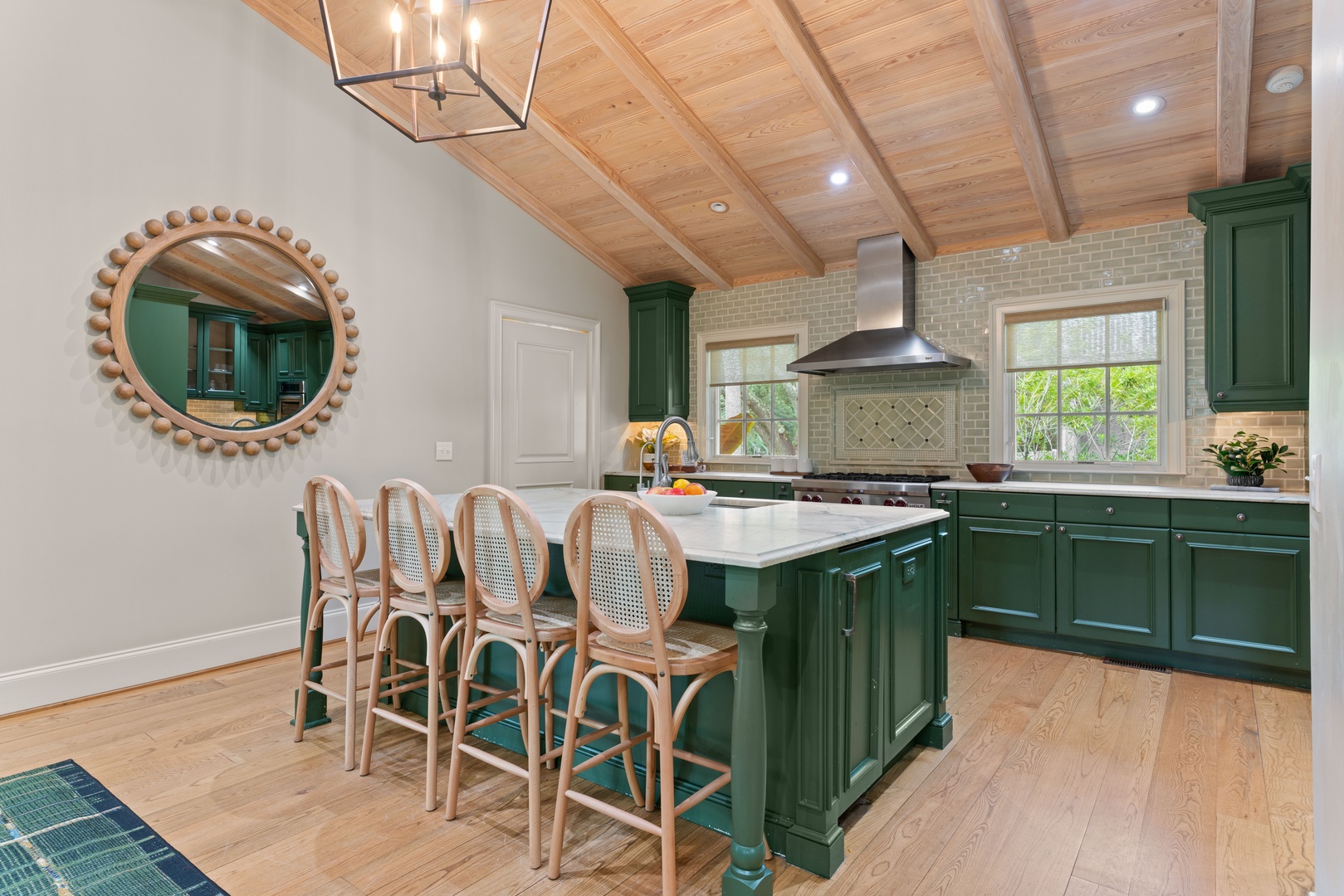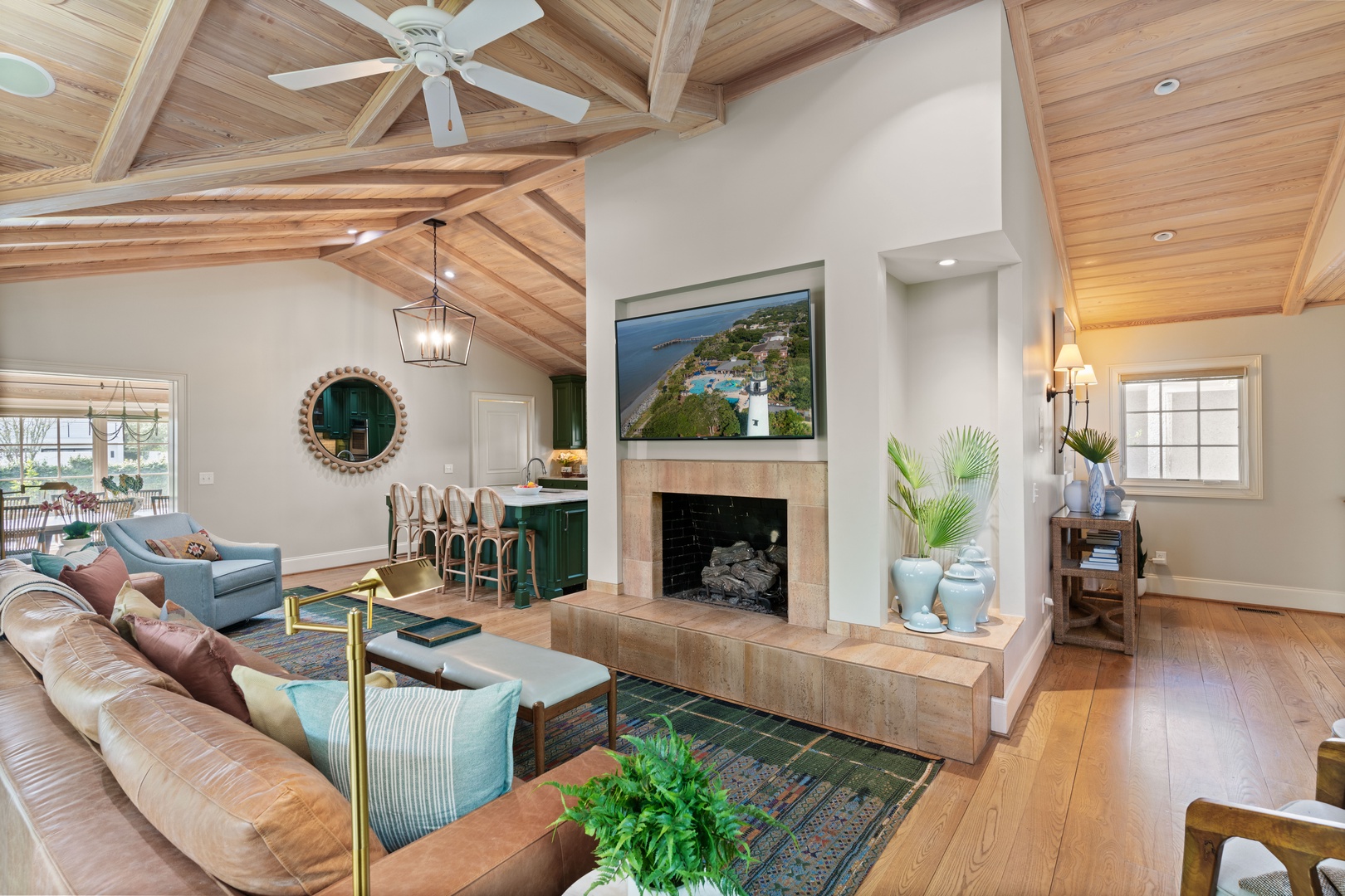 The main level serves as the living area with a large chef's style kitchen, Wolf 6 burner gas stove, Sub Zero Refrigerator, Microwave, Ninja, and fully equipped kitchen. The kitchen is open to a family room and separate dining room. There is access to the covered lanai with a Natural Gas Grill and a Green Egg Cooker.