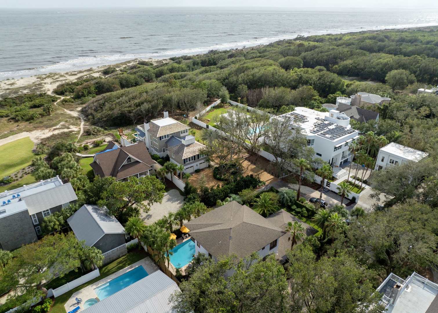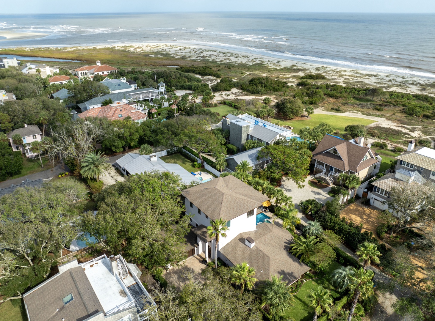 Pocket views of the ocean can be seen from the mid and upper levels of the home.