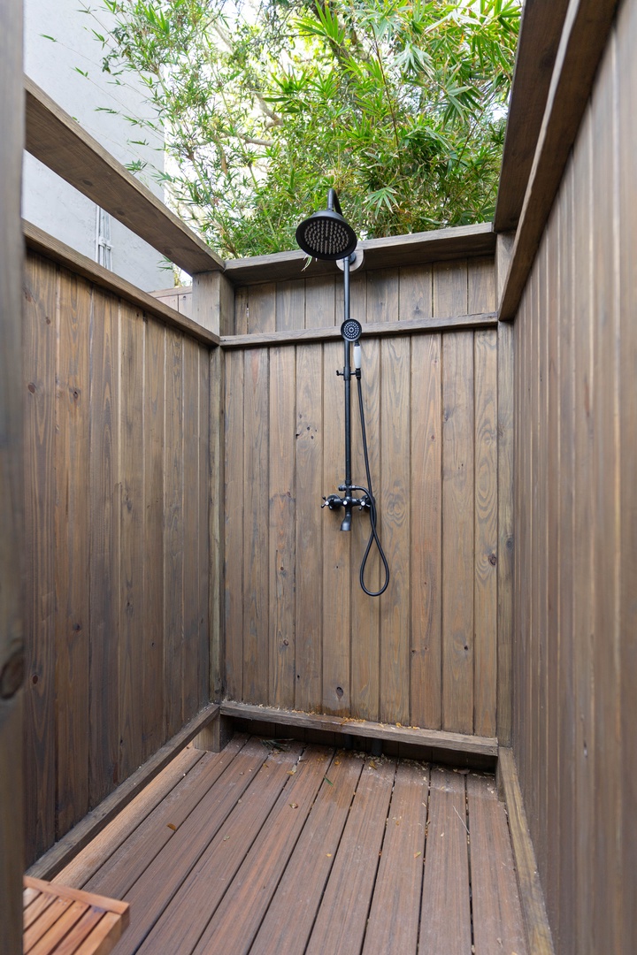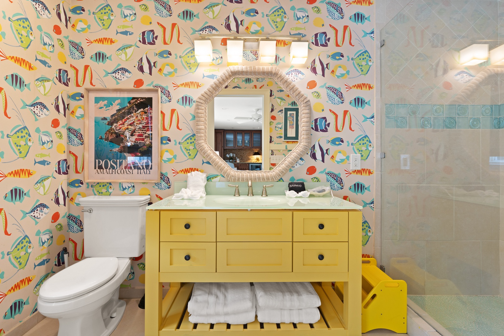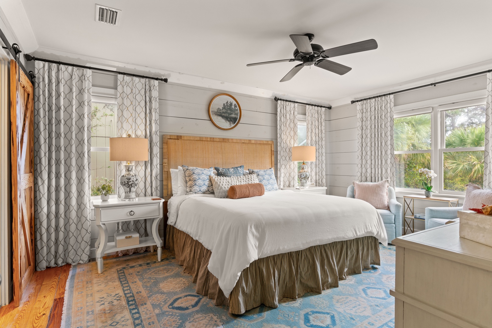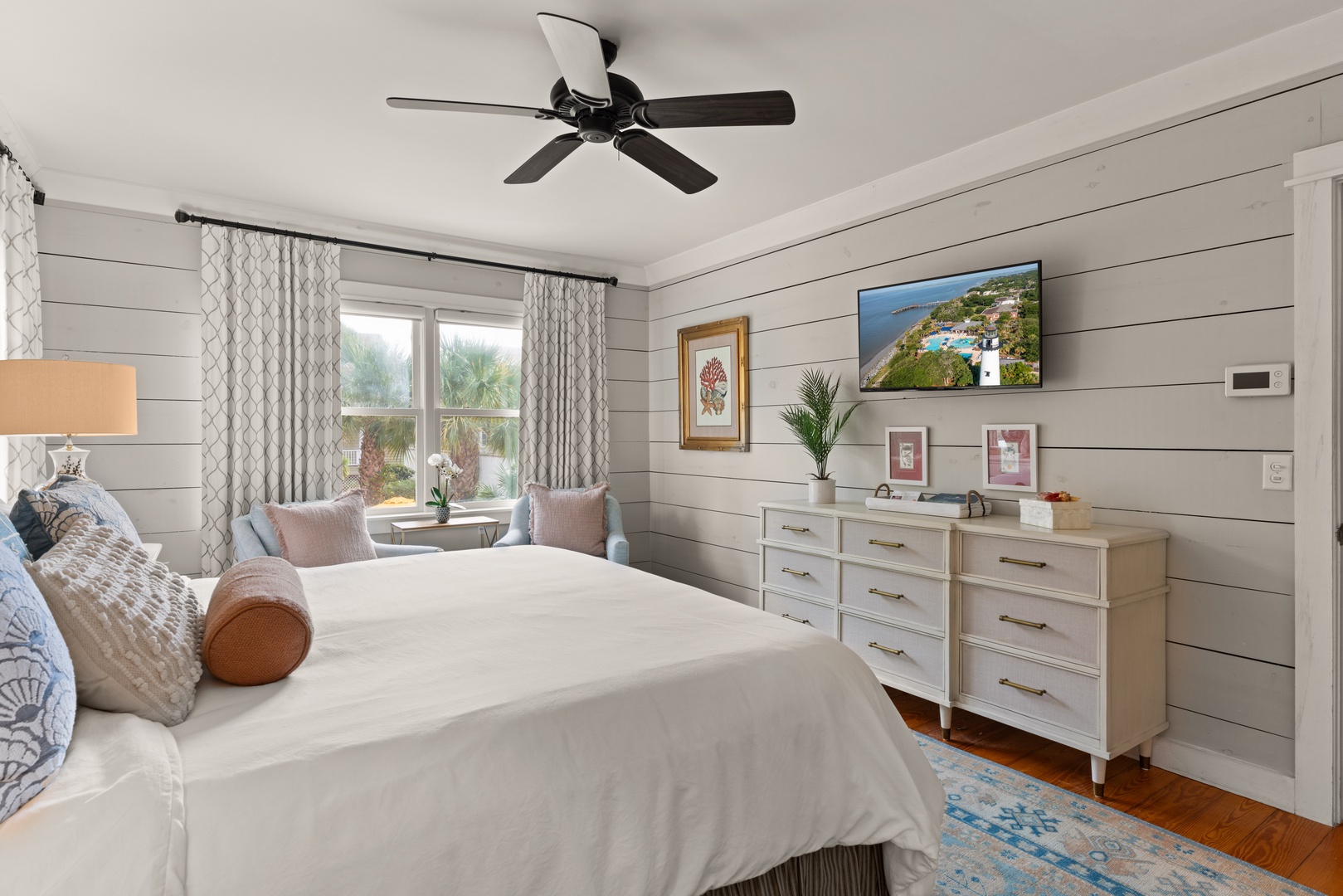The top floor is a Family Primary Suite, with a generous side king bedroom and ensuite bath, plus an additional separate queen bedroom on this level