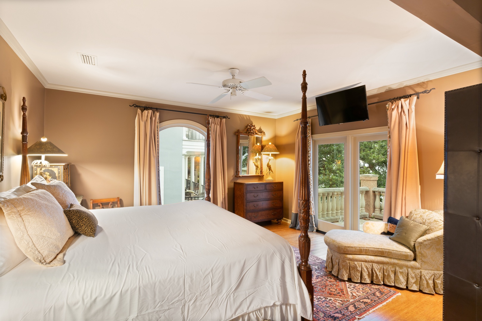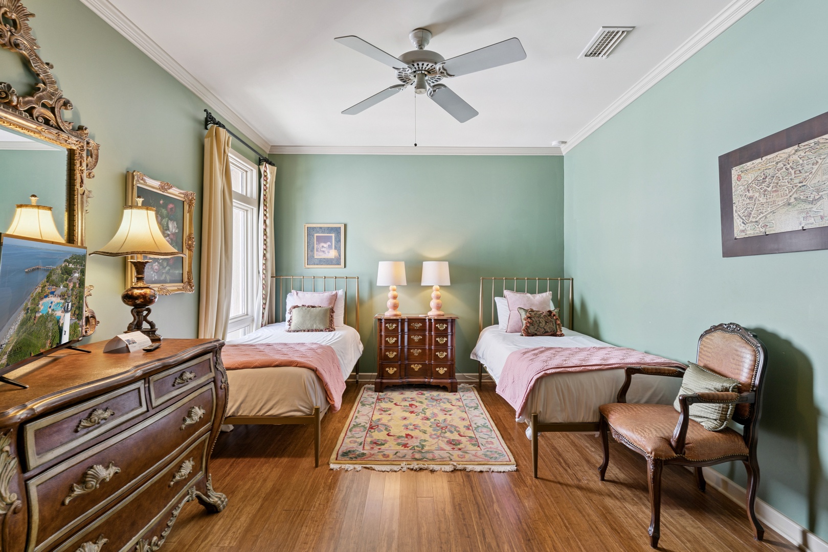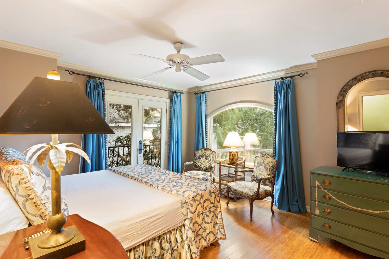 Take the stairs, or the elevator to the Master Suite which has a King size bed, 42" TV, a sitting area that opens to the veranda level of the lanai and more amazing Ocean Views, obstructed only by the canopy of the majestic live oak trees. The Master en-suite bath has double vanity vessel sinks, a large walk in shower with body sprayers and a large walk-in closet. Two guest suites include a King a Twin room with two-singles, and both with their own en-suite bathroom with vanity, commode and a tub/shower combinations. Each room has been tastefully decorated in keeping with the overall old-world Italian charm context of the home and includes blackout curtains for the late-sleeper and TV's.