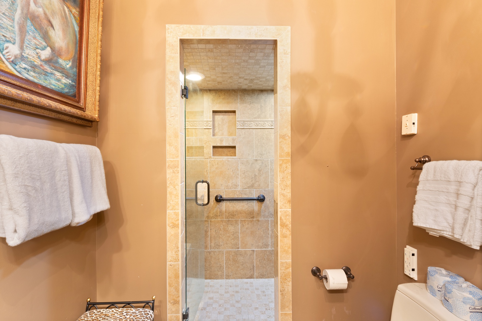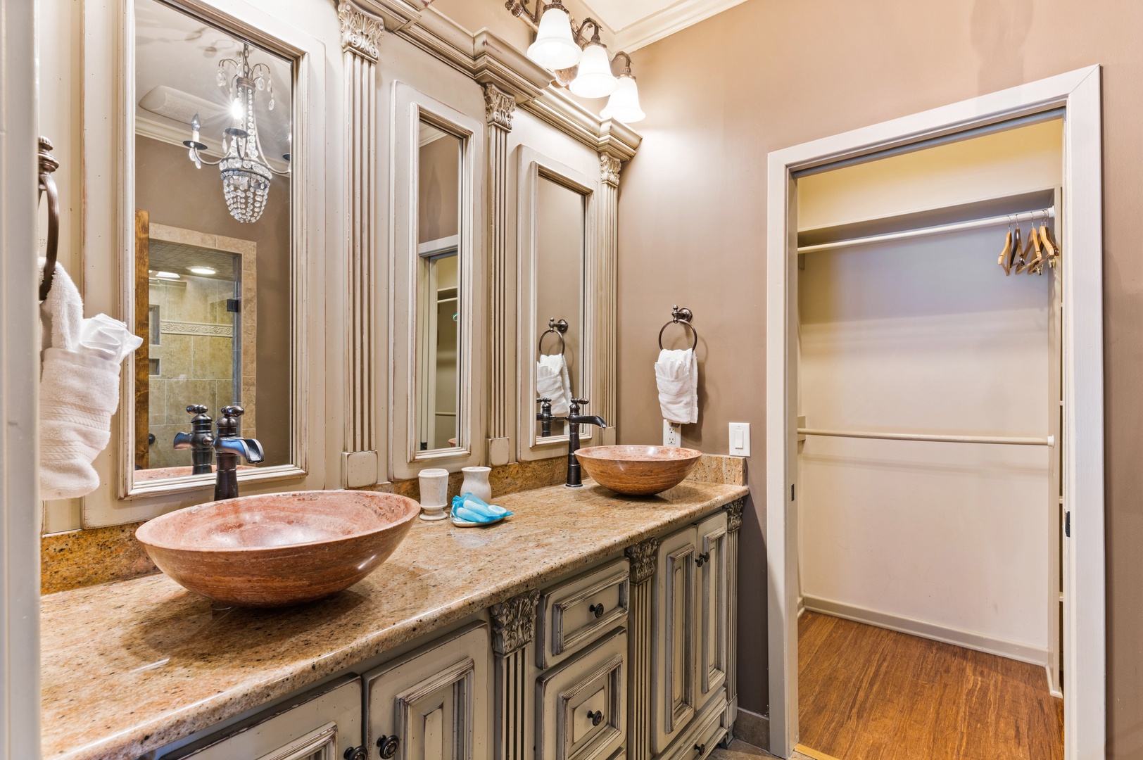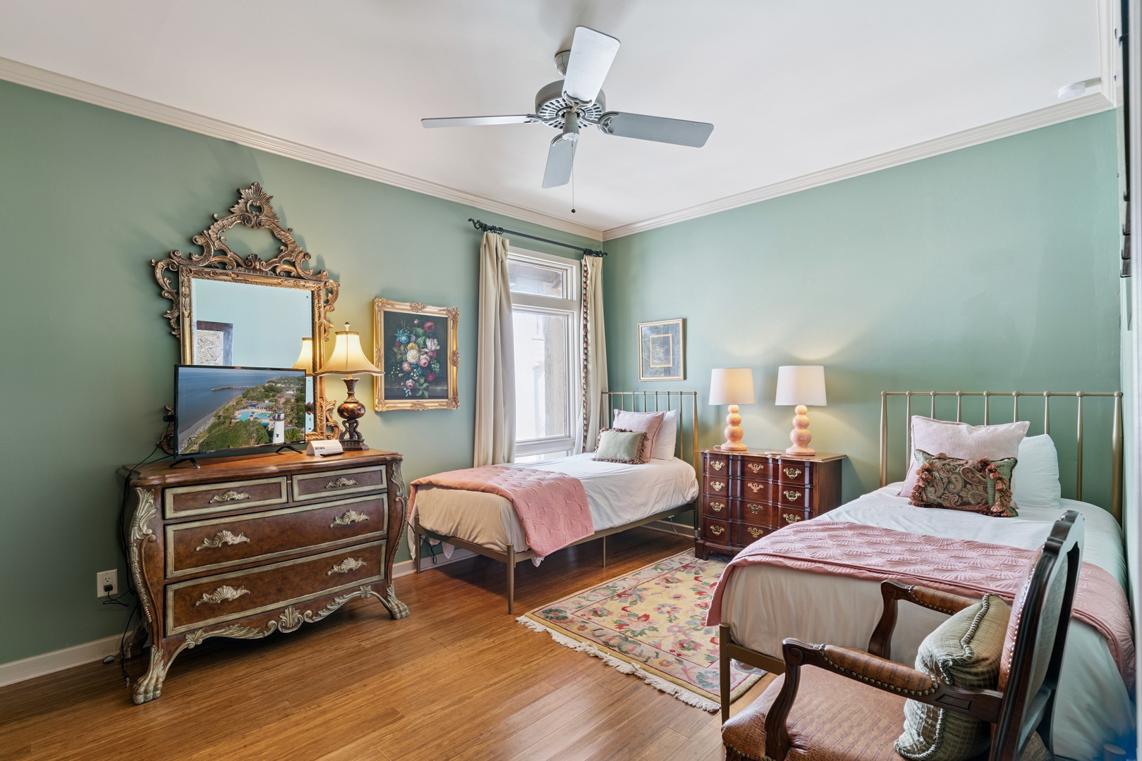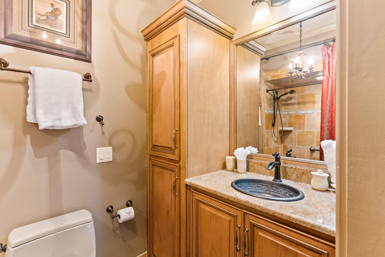 Take the stairs, or the elevator to the Master Suite which has a King size bed, 42" TV, a sitting area that opens to the veranda level of the lanai and more amazing Ocean Views, obstructed only by the canopy of the majestic live oak trees. The Master en-suite bath has double vanity vessel sinks, a large walk in shower with body sprayers and a large walk-in closet. Two guest suites include a King a Twin room with two-singles, and both with their own en-suite bathroom with vanity, commode and a tub/shower combinations. Each room has been tastefully decorated in keeping with the overall old-world Italian charm context of the home and includes blackout curtains for the late-sleeper and TV's.