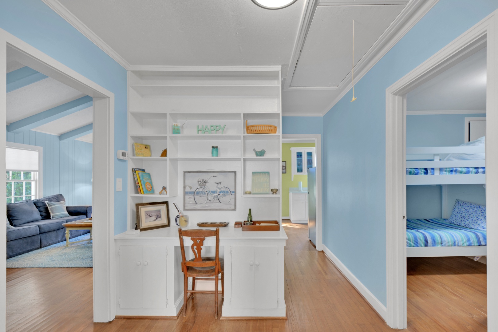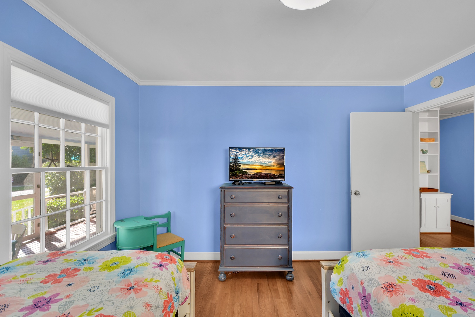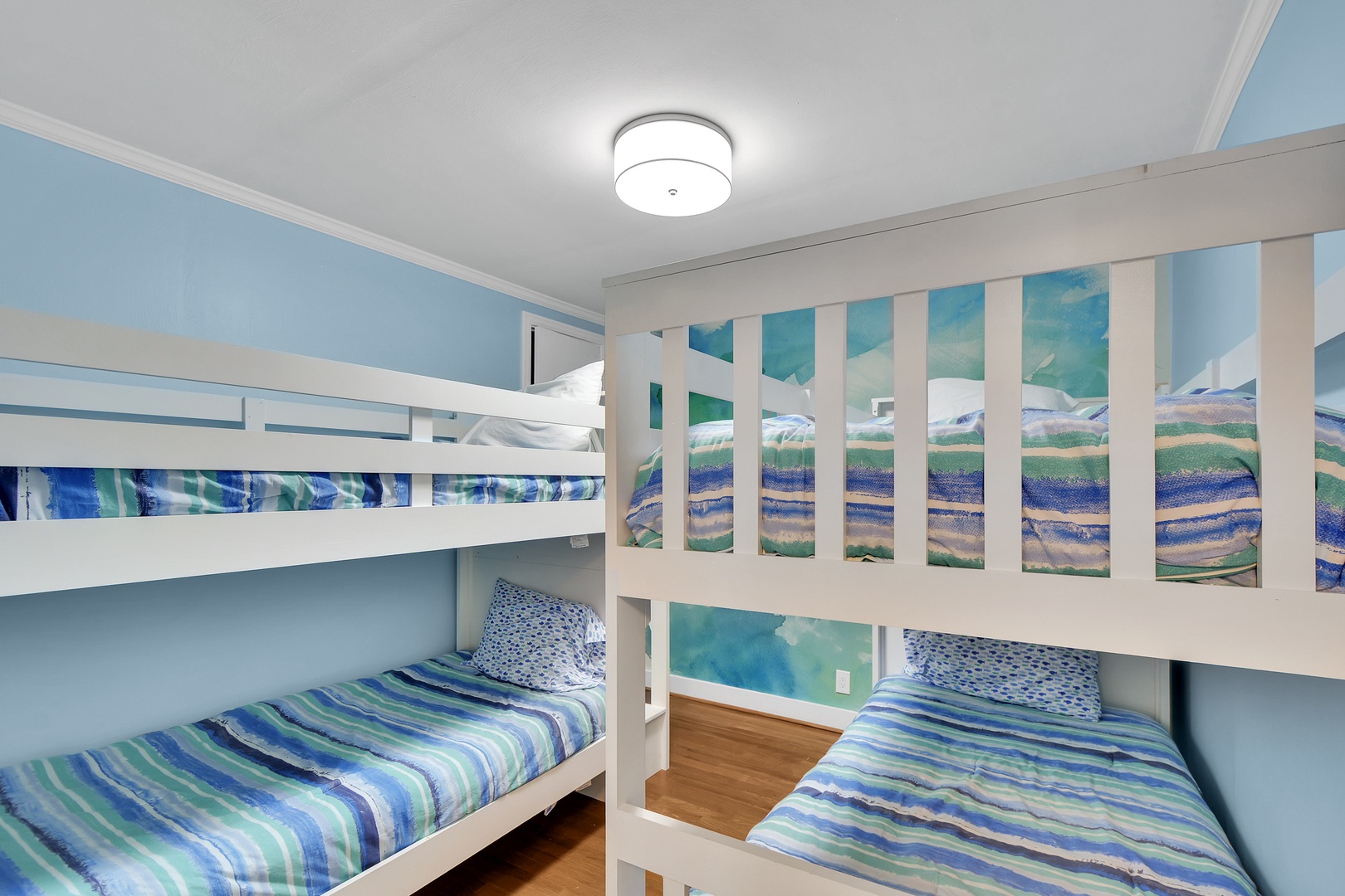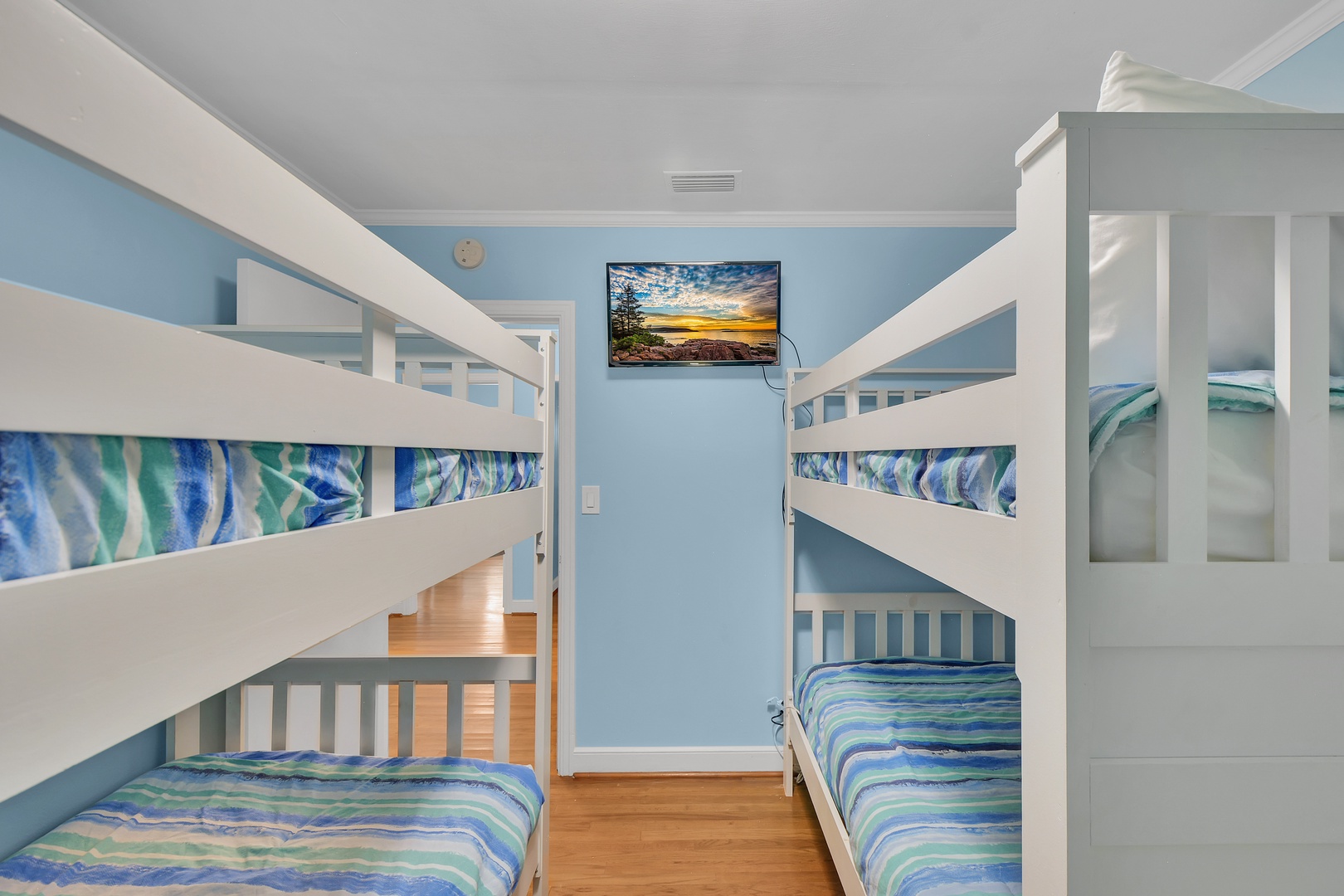 Bunk Room – 2 single bunks, sleeps 4, 32” TV, share with hall bathroom with combo/tub shower. Note this room is designed for the kids - it's a small room with a small closet and no windows -great for sleeping but not meant to be accommodation for adults.