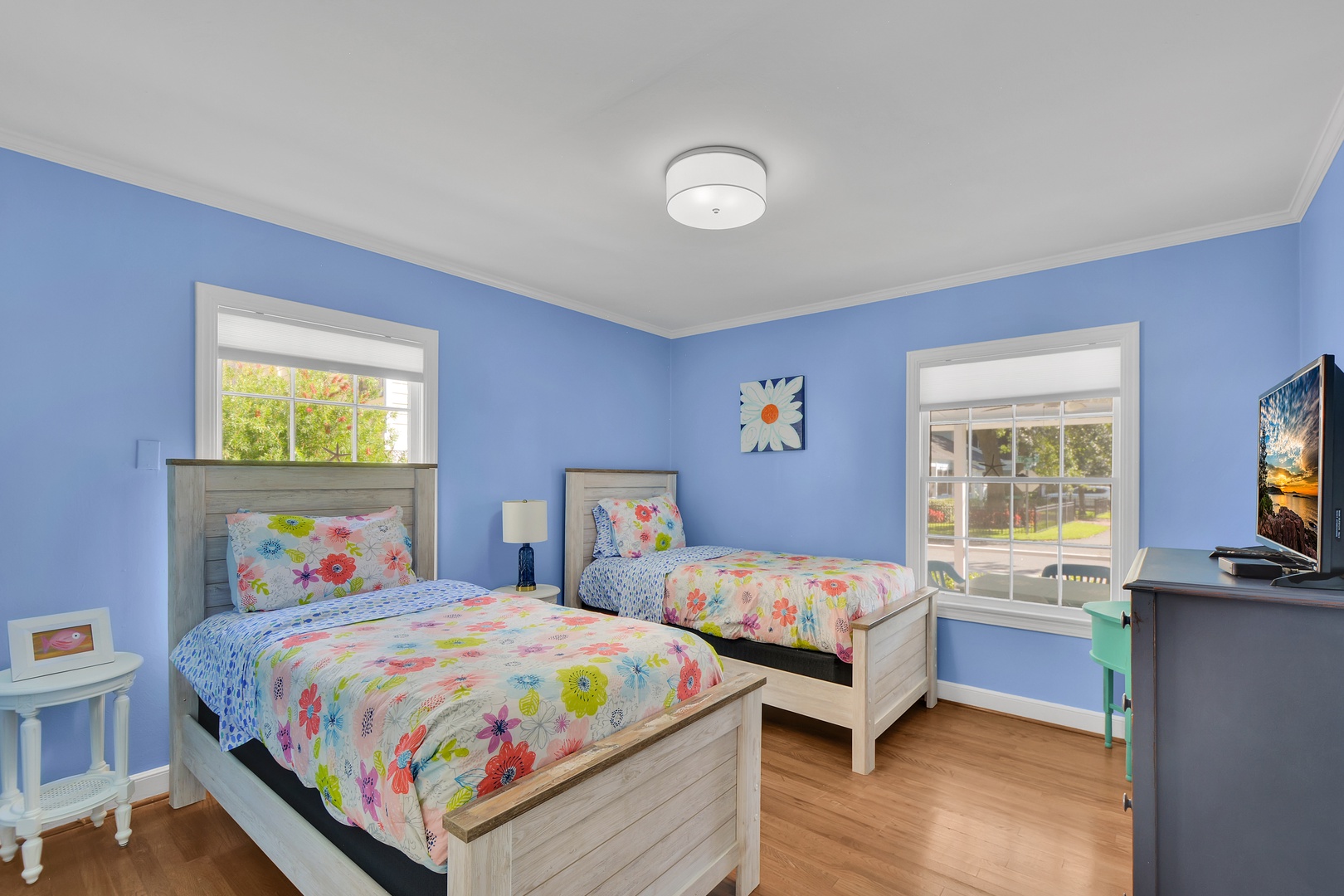 Twin Room – 2 single beds, sleeps 2, 32”TV, share with hall bathroom with combo/tub shower