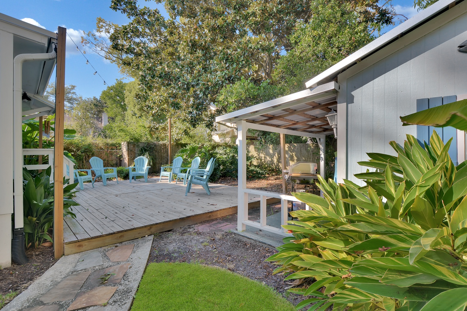 Outside the family room is a generous sized gathering deck and a gas grill.