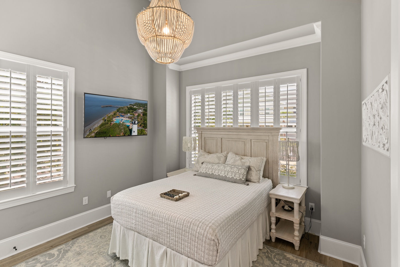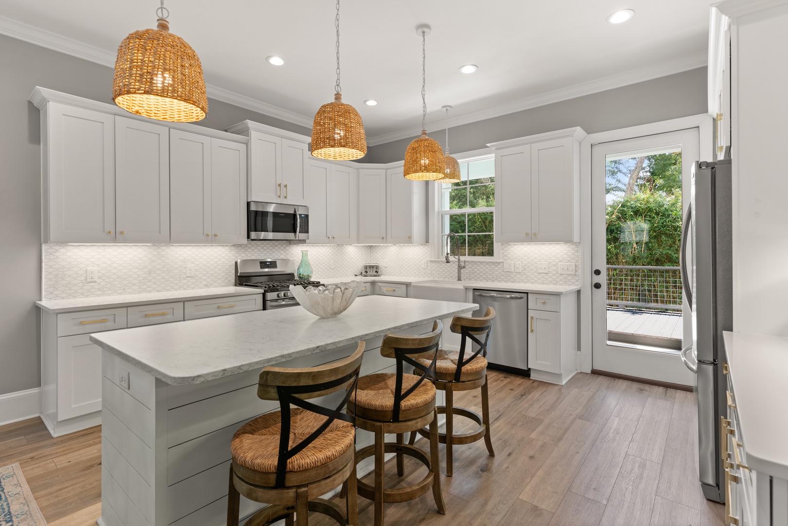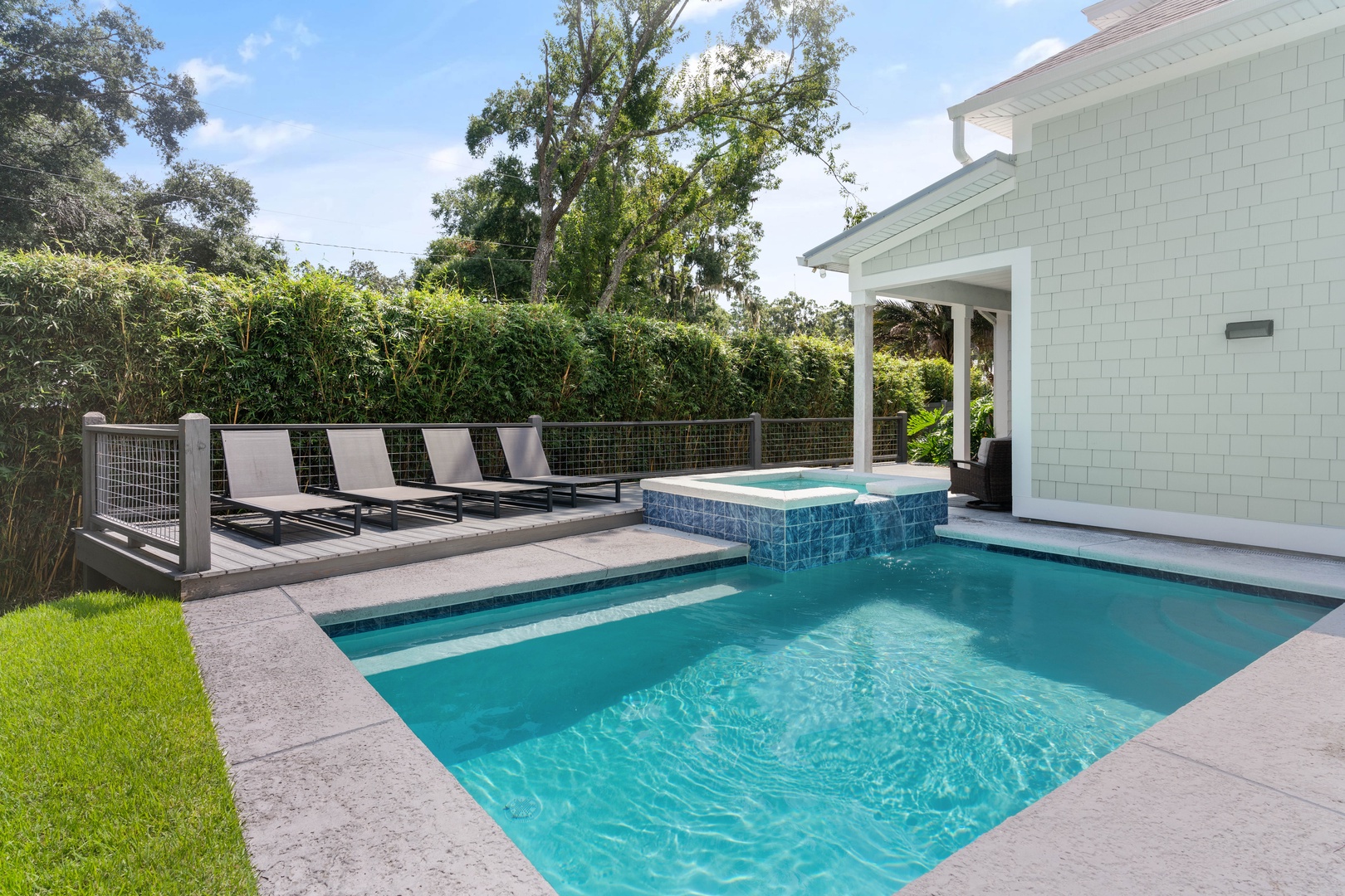 Just a short stroll away from pristine beaches, charming shops, and delectable dining options, Hook, Wine & Sinker is perfectly situated for both relaxation and adventure. Dive into your private oasis featuring a sparkling pool and spa, which can be heated upon request for an additional $75/day. The pool area is complemented by a cute chic pool house, complete with sliding doors that open directly to the water, creating an effortless indoor-outdoor living experience.