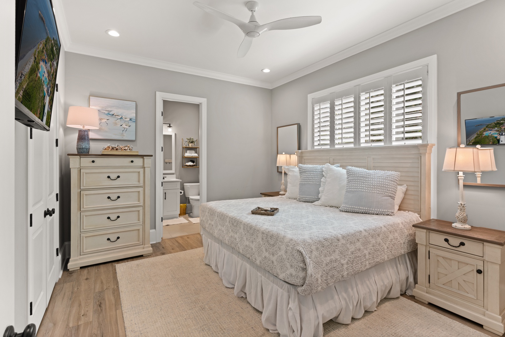 Bedroom 1: main floor, Primary suite, King (sleeps 2), HD TV